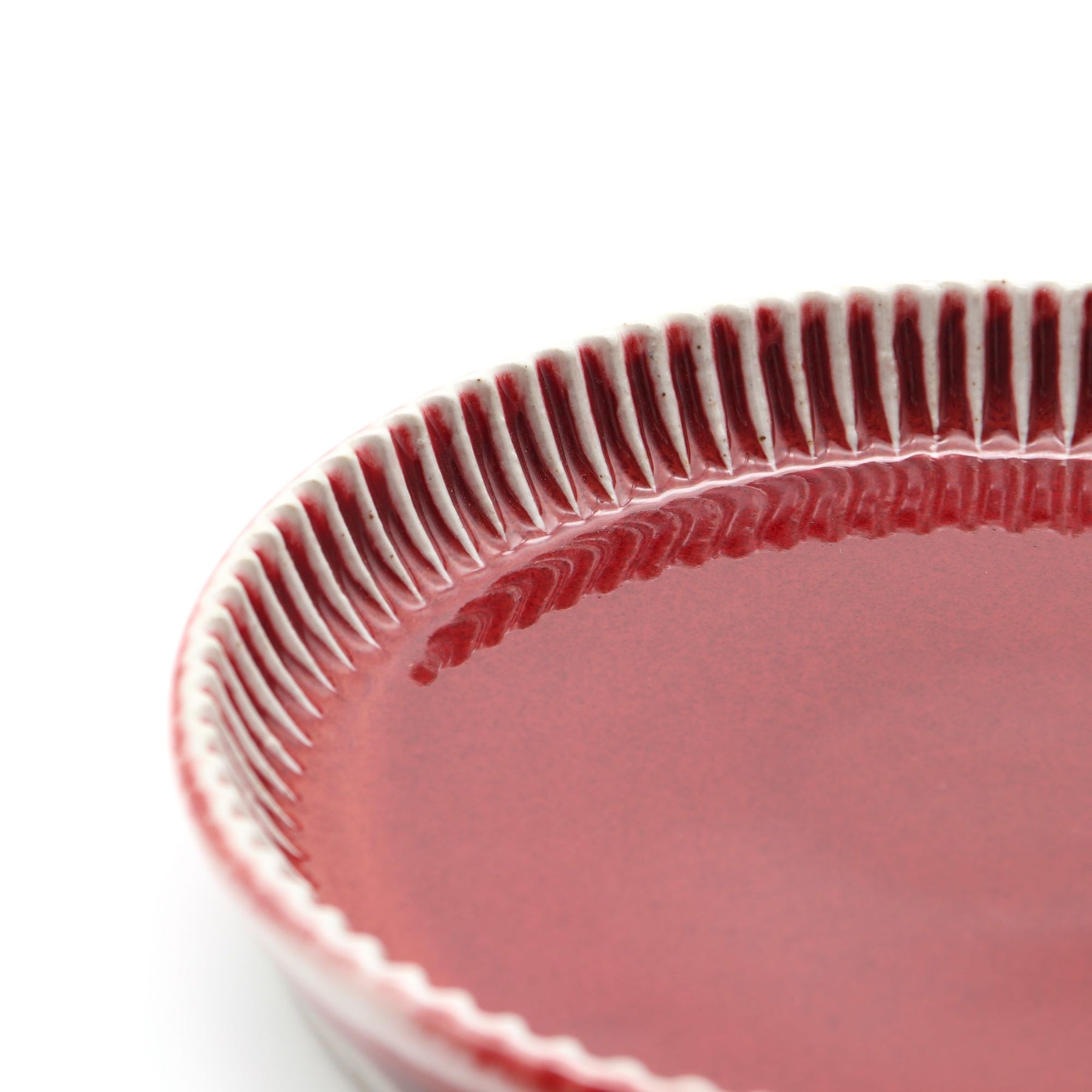 こちらは縁に鎬が施されたパイ皿。縁が立ち上がっている分、ハンバーグやチキンなどのお料理にソースやチーズなどをかけても大丈夫。一人分のサラダ、煮びたし、パイやキッシュ、グラタン、ドリアなどお料理をする楽しみも増えそうです。