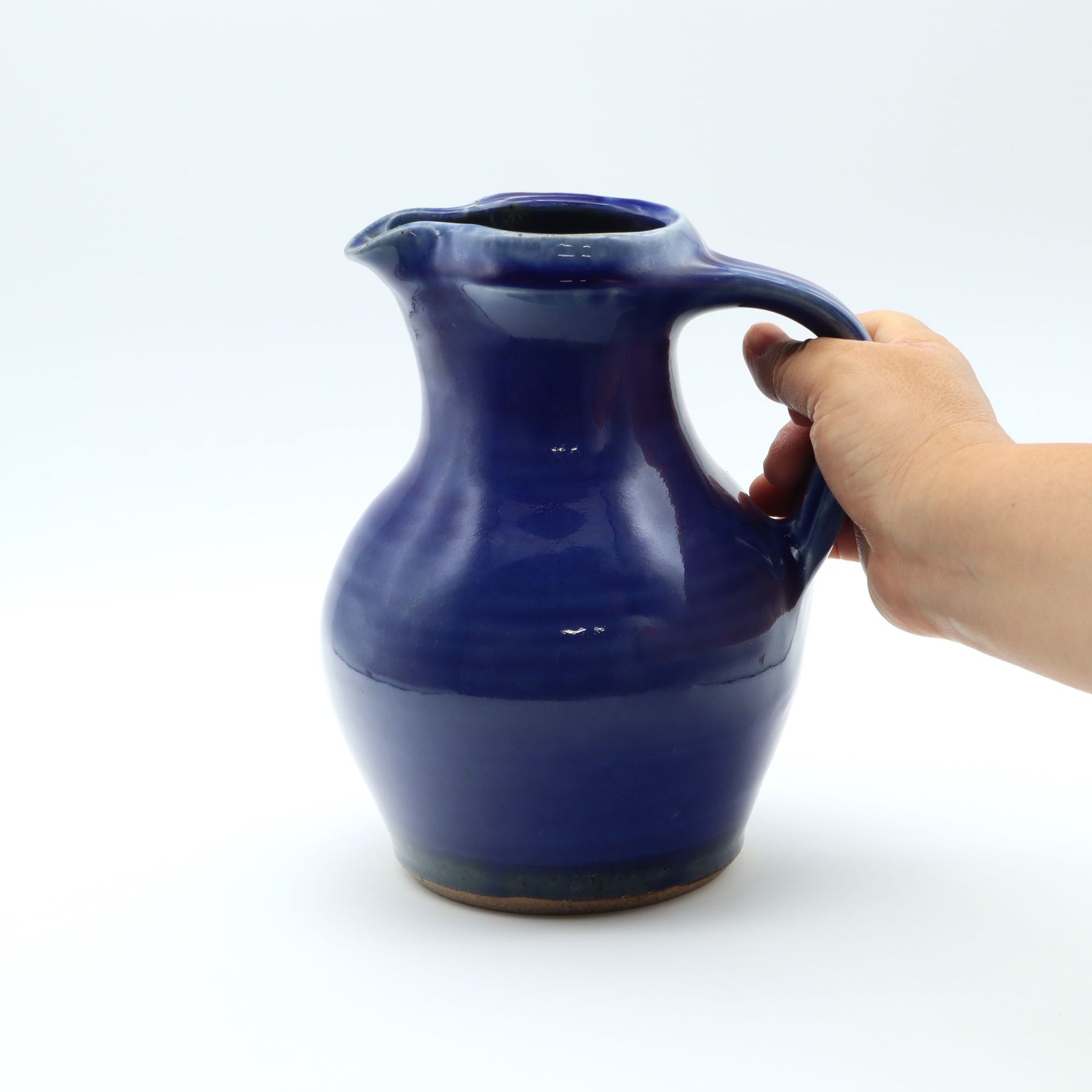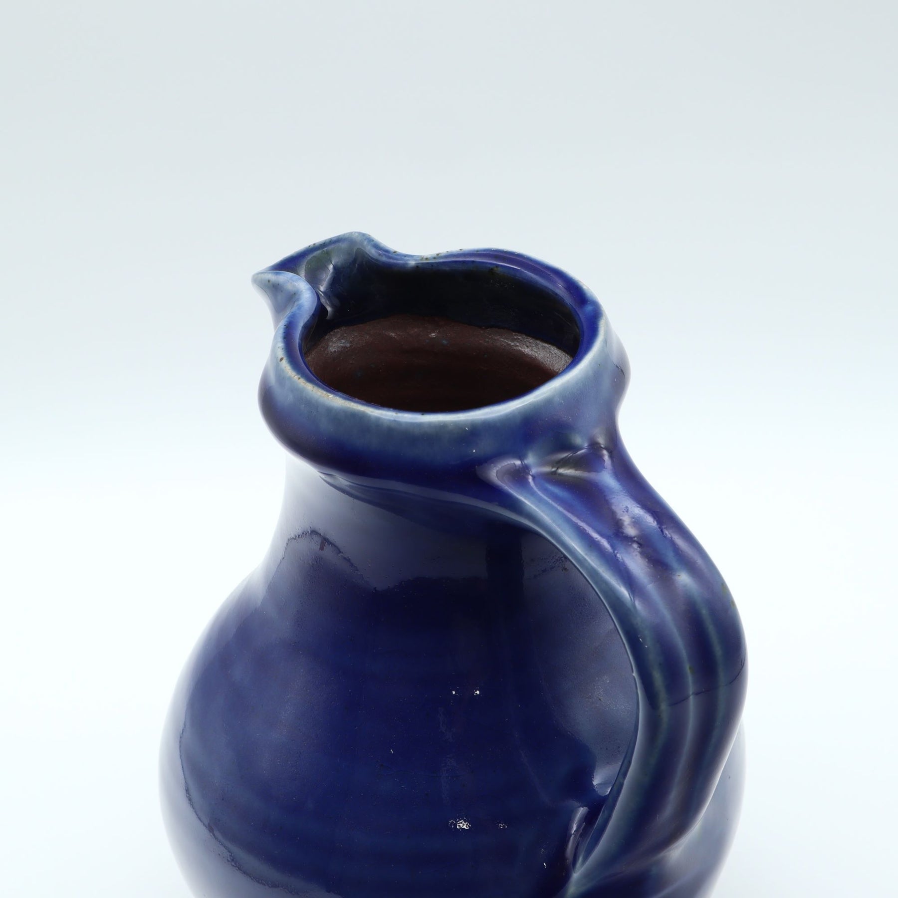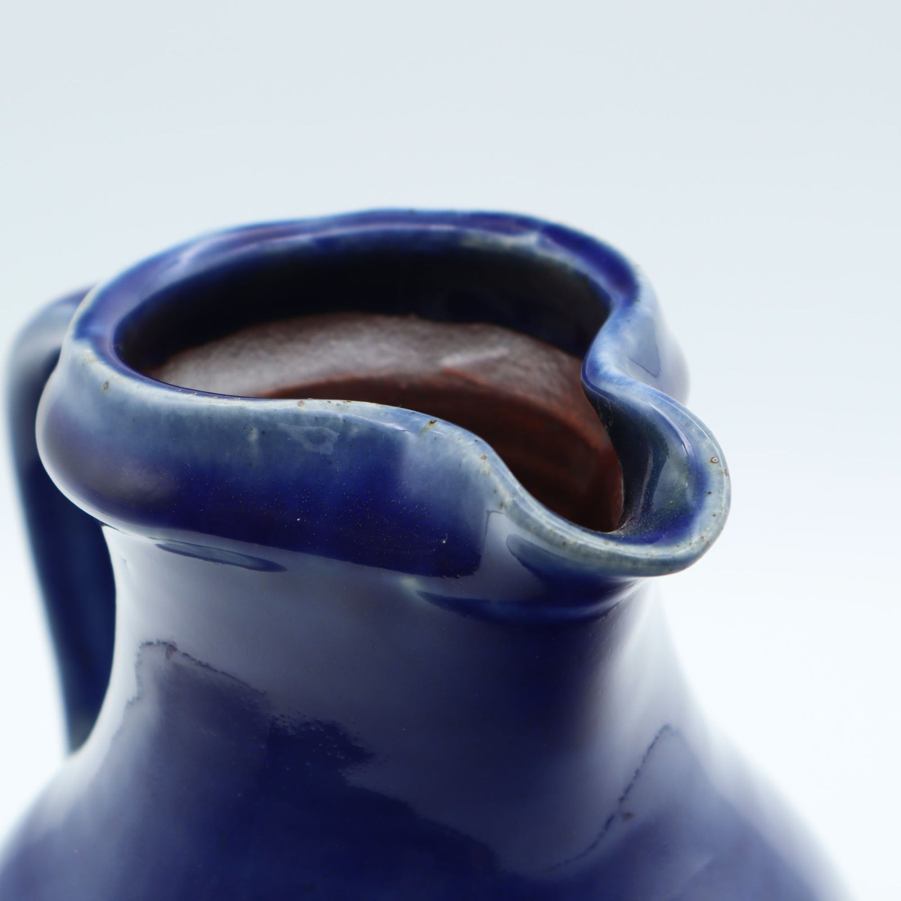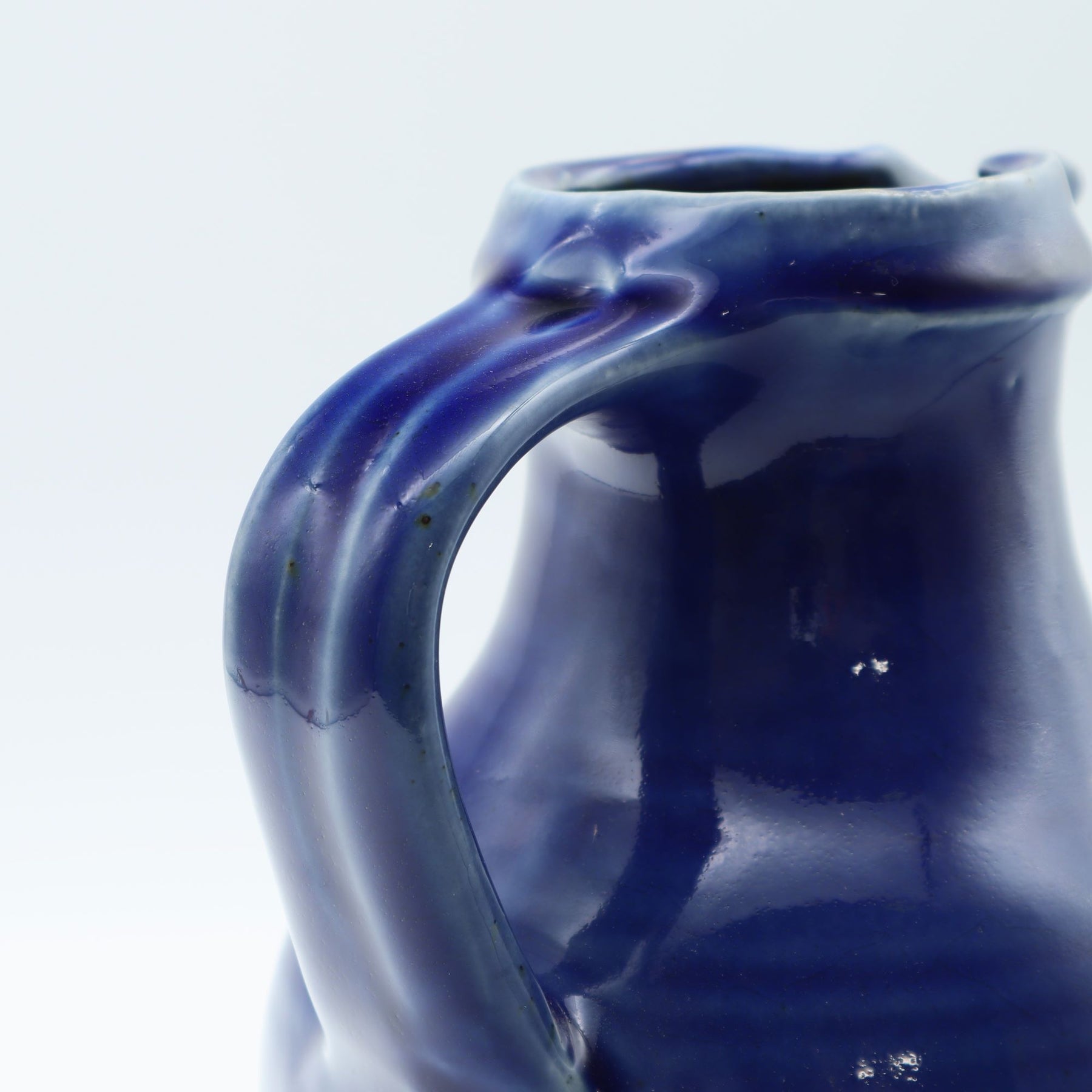 こちらは、深く美しい海や湖のような呉須の色が印象的なピッチャーです。ハンドル(把手)は、バーナード・リーチ氏に指導してもらった技で、木から枝が伸びるような自然な形が手に馴染むやさしいフォルム。飲み物のサーブだけでなく、お花を活けるフラワーベースとしてもおすすめです。インテリアとしても美しく映えるアイテムです。