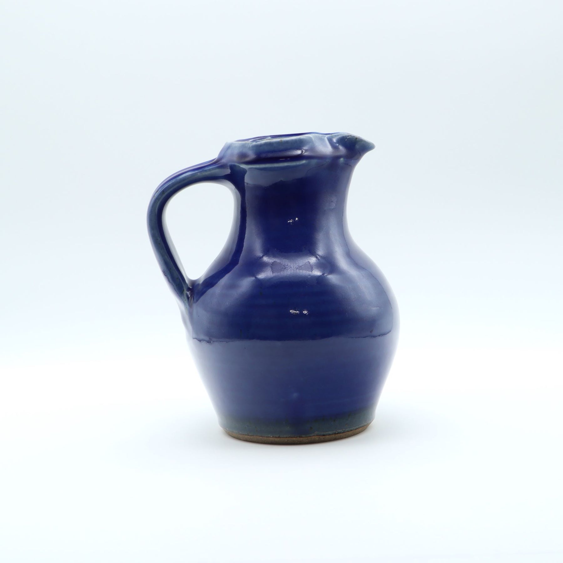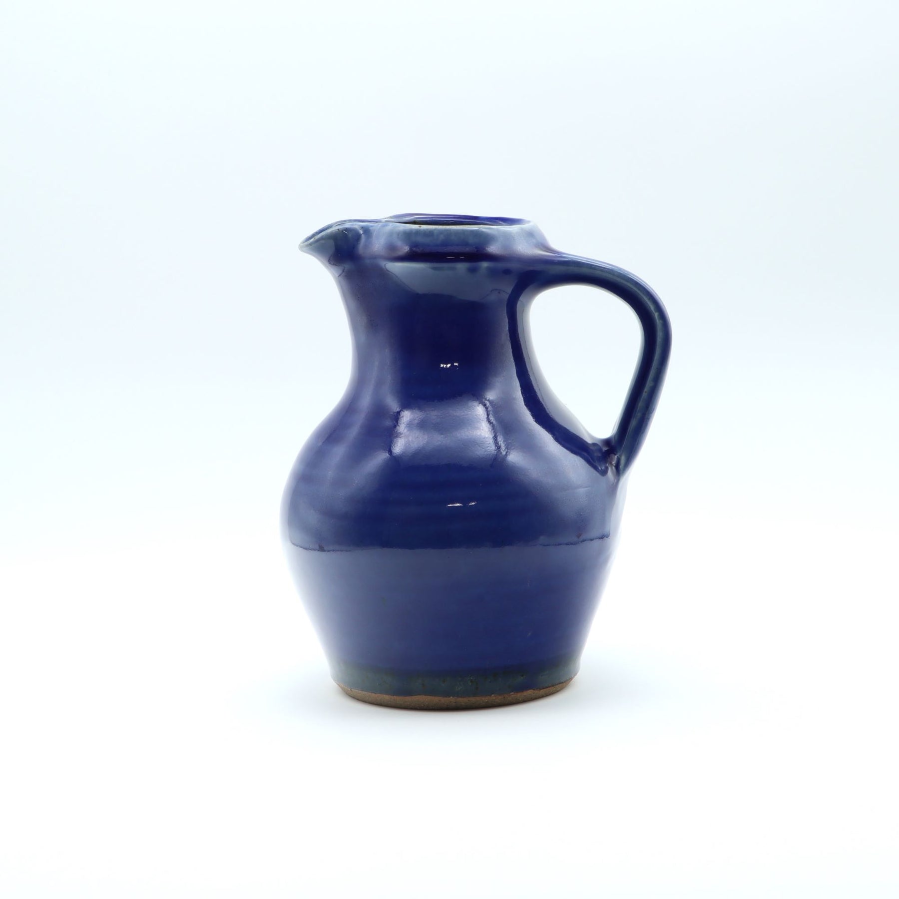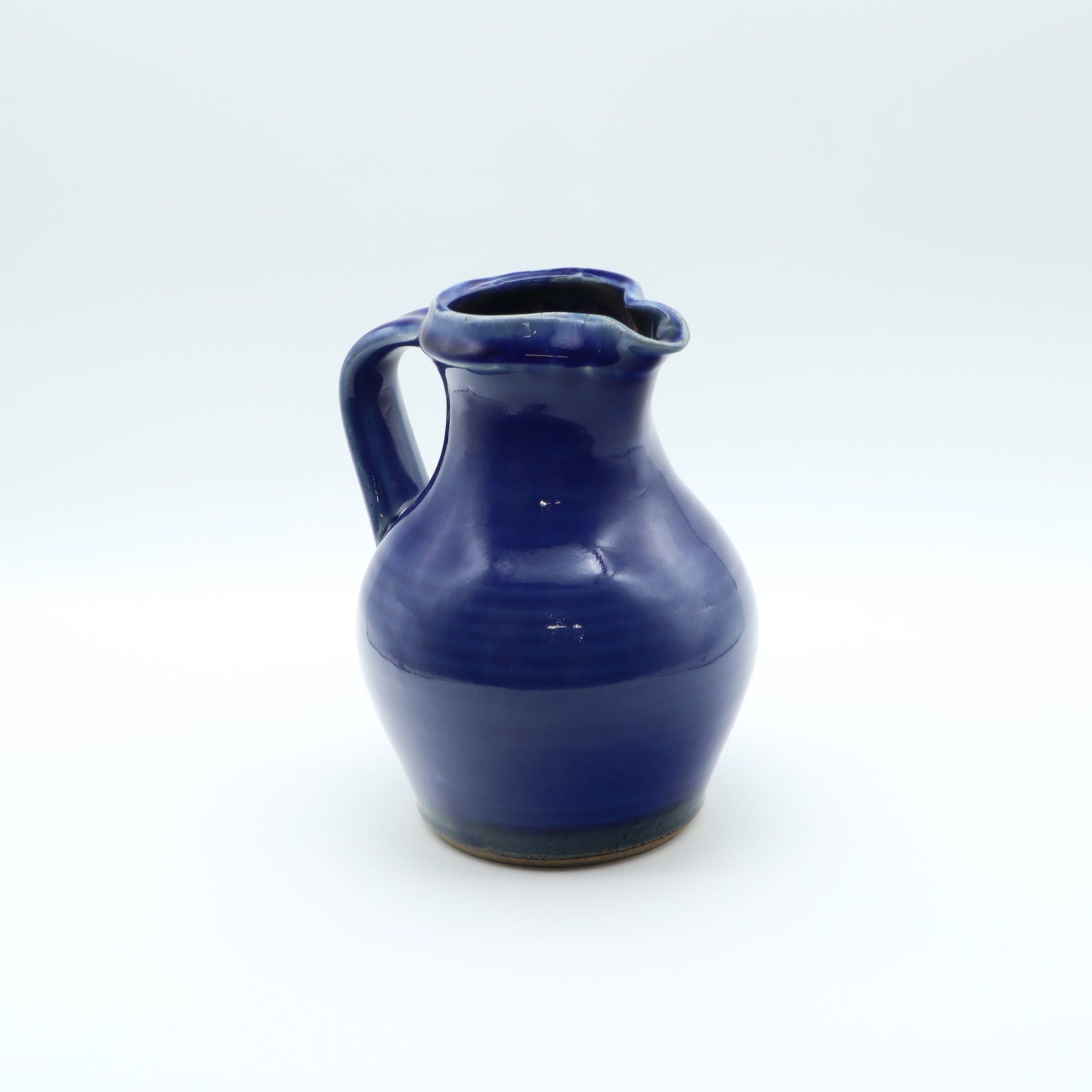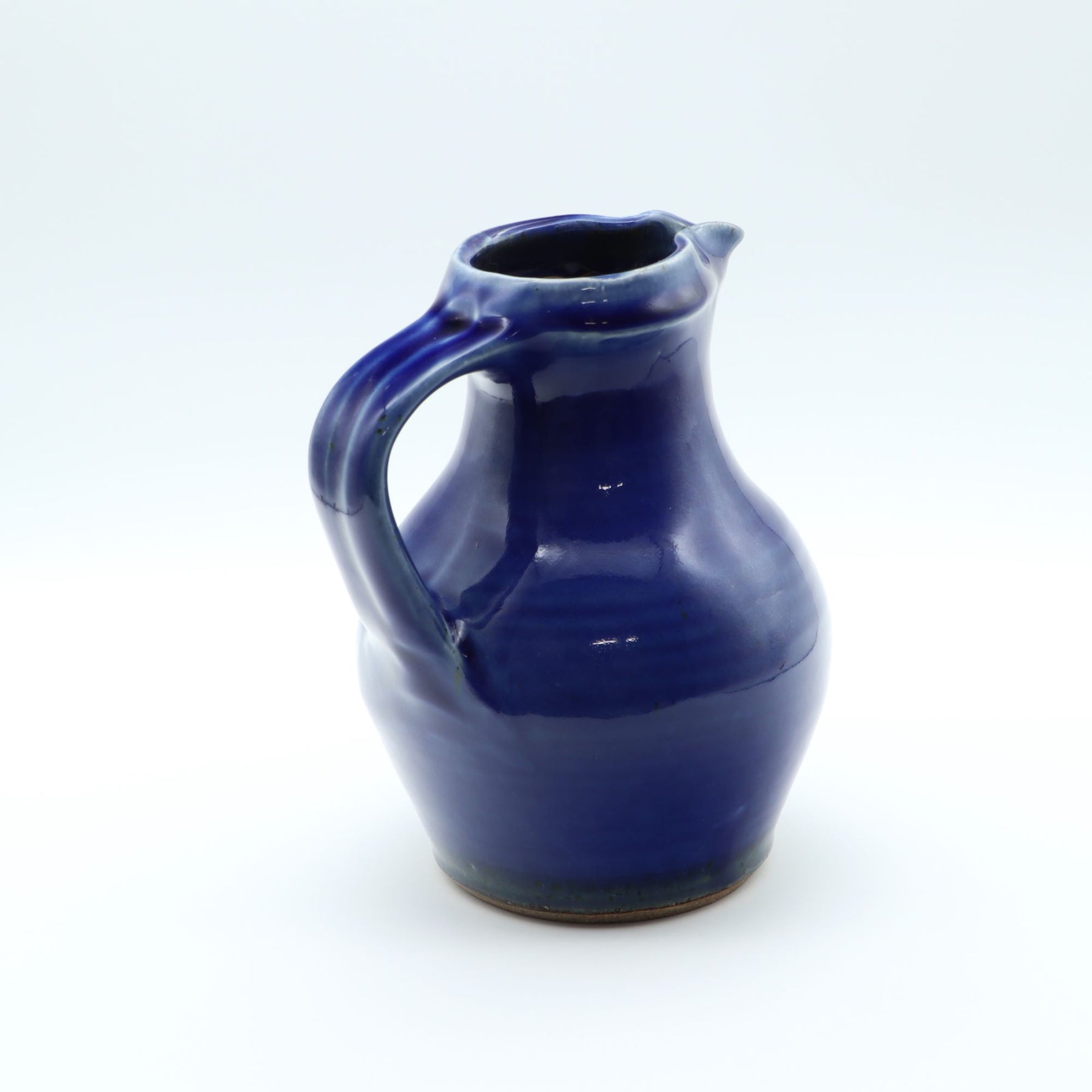 こちらは、深く美しい海や湖のような呉須の色が印象的なピッチャーです。ハンドル(把手)は、バーナード・リーチ氏に指導してもらった技で、木から枝が伸びるような自然な形が手に馴染むやさしいフォルム。飲み物のサーブだけでなく、お花を活けるフラワーベースとしてもおすすめです。インテリアとしても美しく映えるアイテムです。