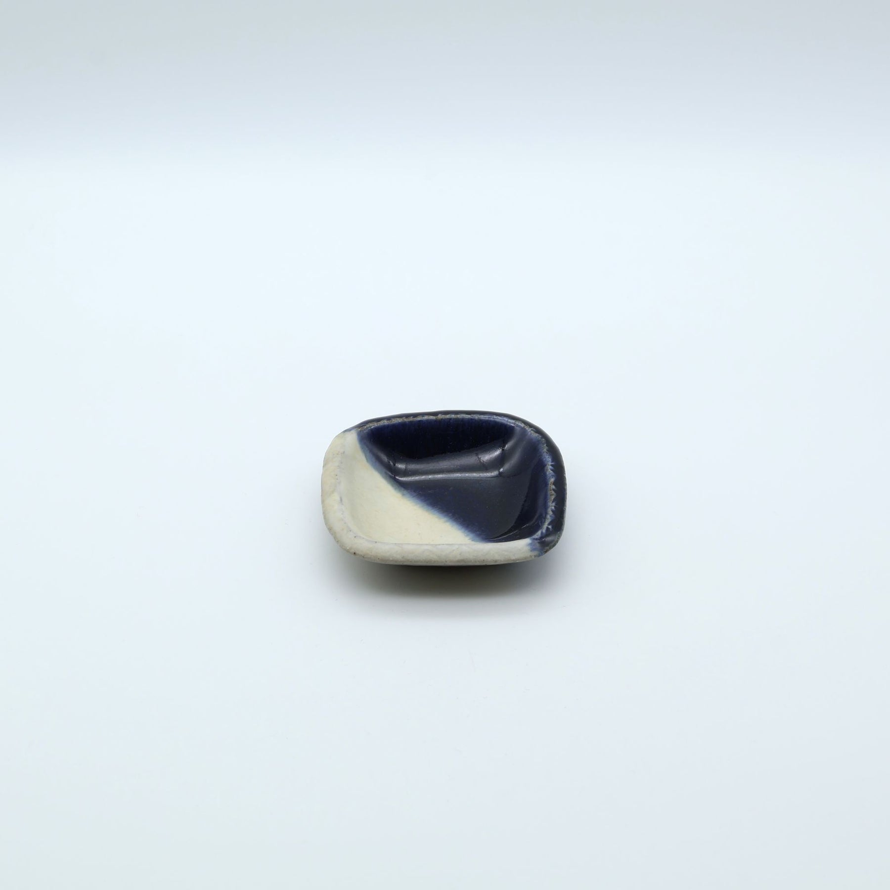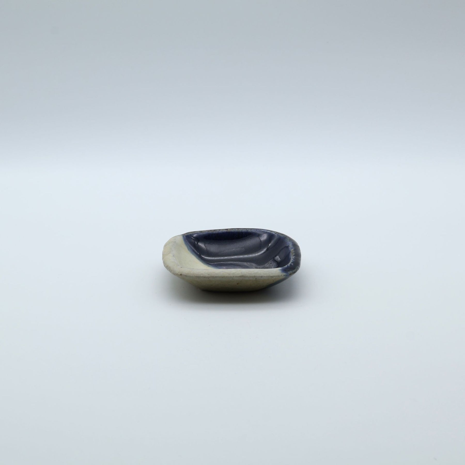 こちらは異なる釉薬による掛け分け豆皿。ネギやショウガなどの薬味、お醤油などの調味料、お漬物や梅干しなどちょっとした盛り付けに万能に使えます。小さいながらもツートーンカラーの存在感で、食卓が賑やかに。