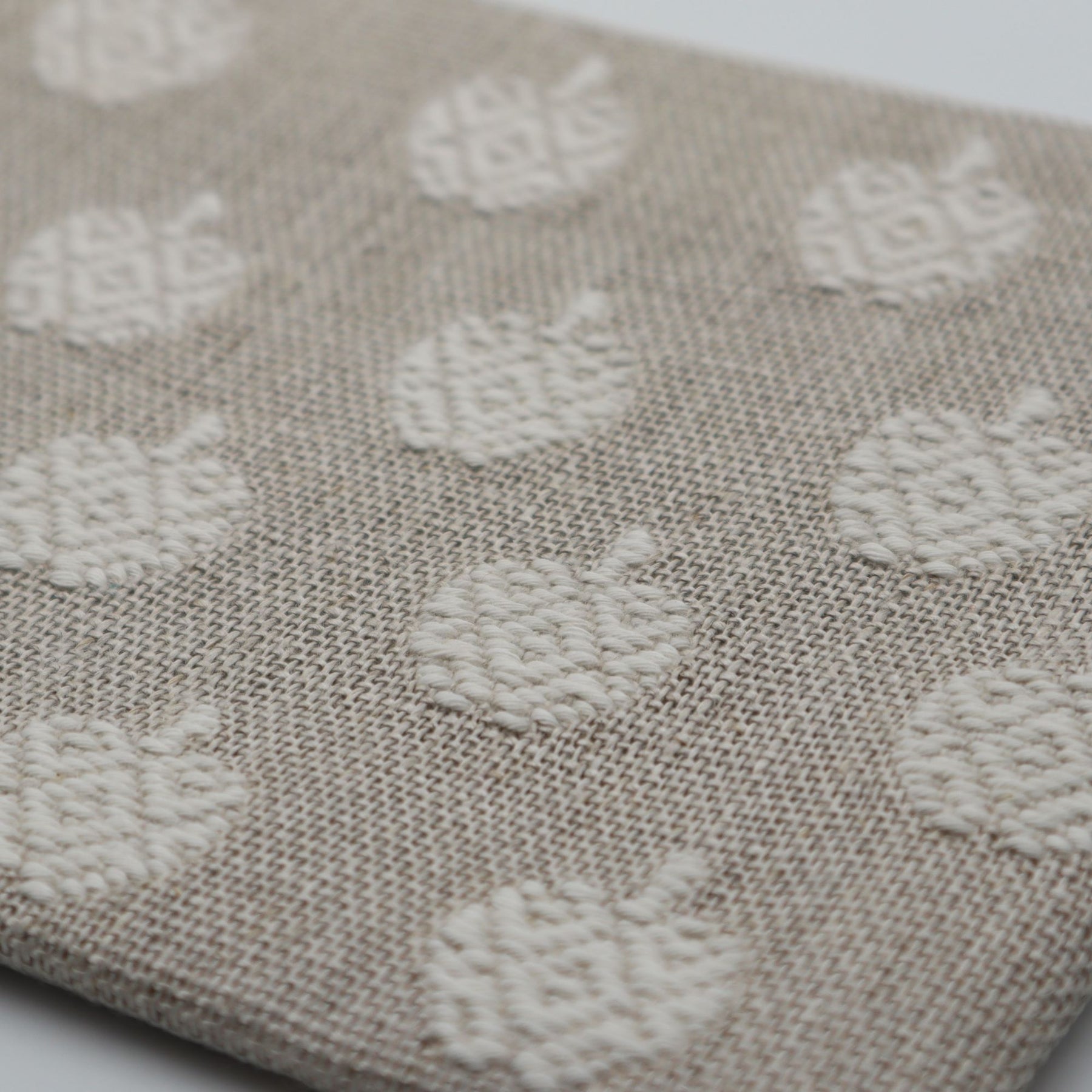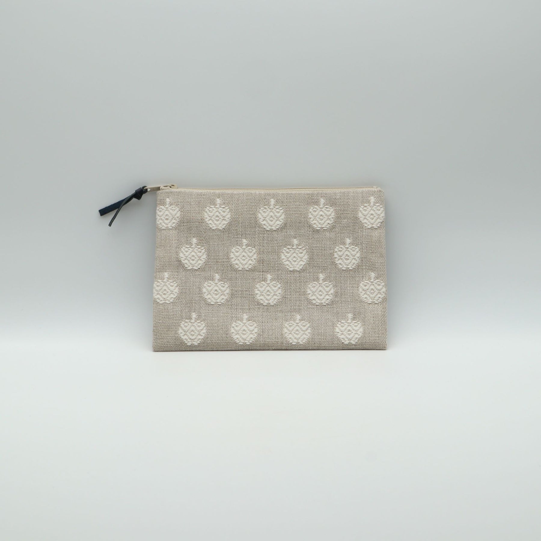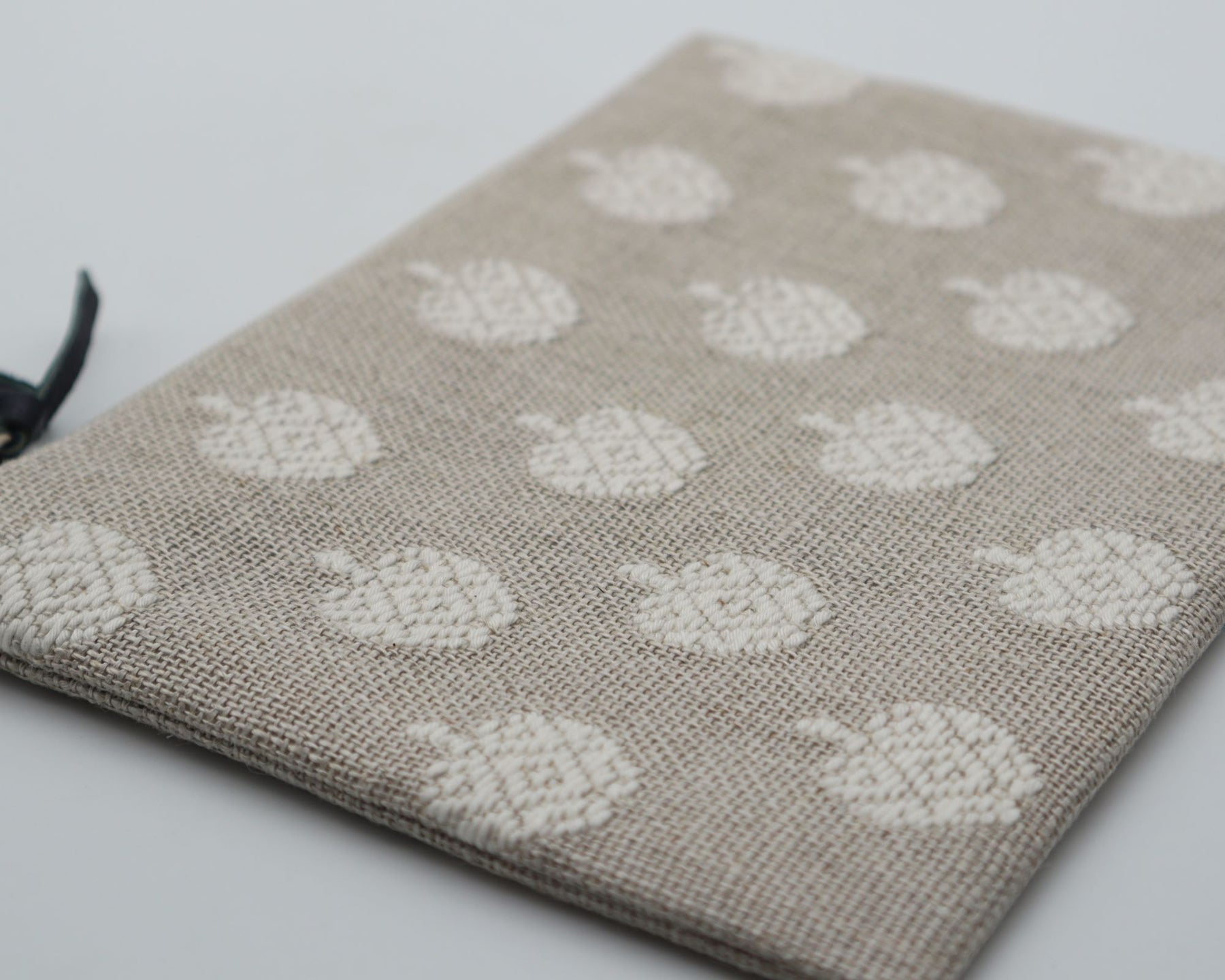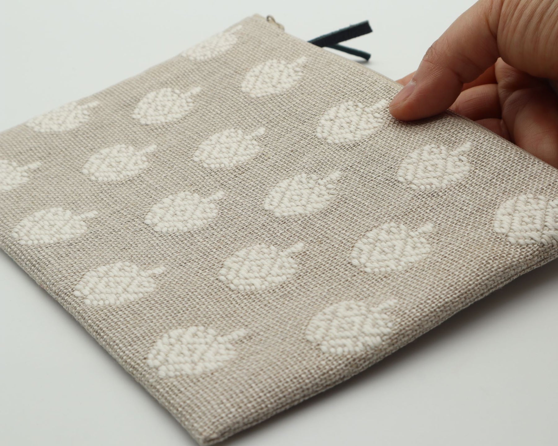 こちらは青森を代表する果物であるりんごの柄がデザインされたポーチ。一針一針ふっくらと丁寧に縫われた模様が表面にあしらわれています。小さなりんごがたくさん刺繍されたキュートなデザインが特徴です。アクセサリーを入れたり、ティッシュやマスクなど衛生用品を入れたり、通帳を入れたり、