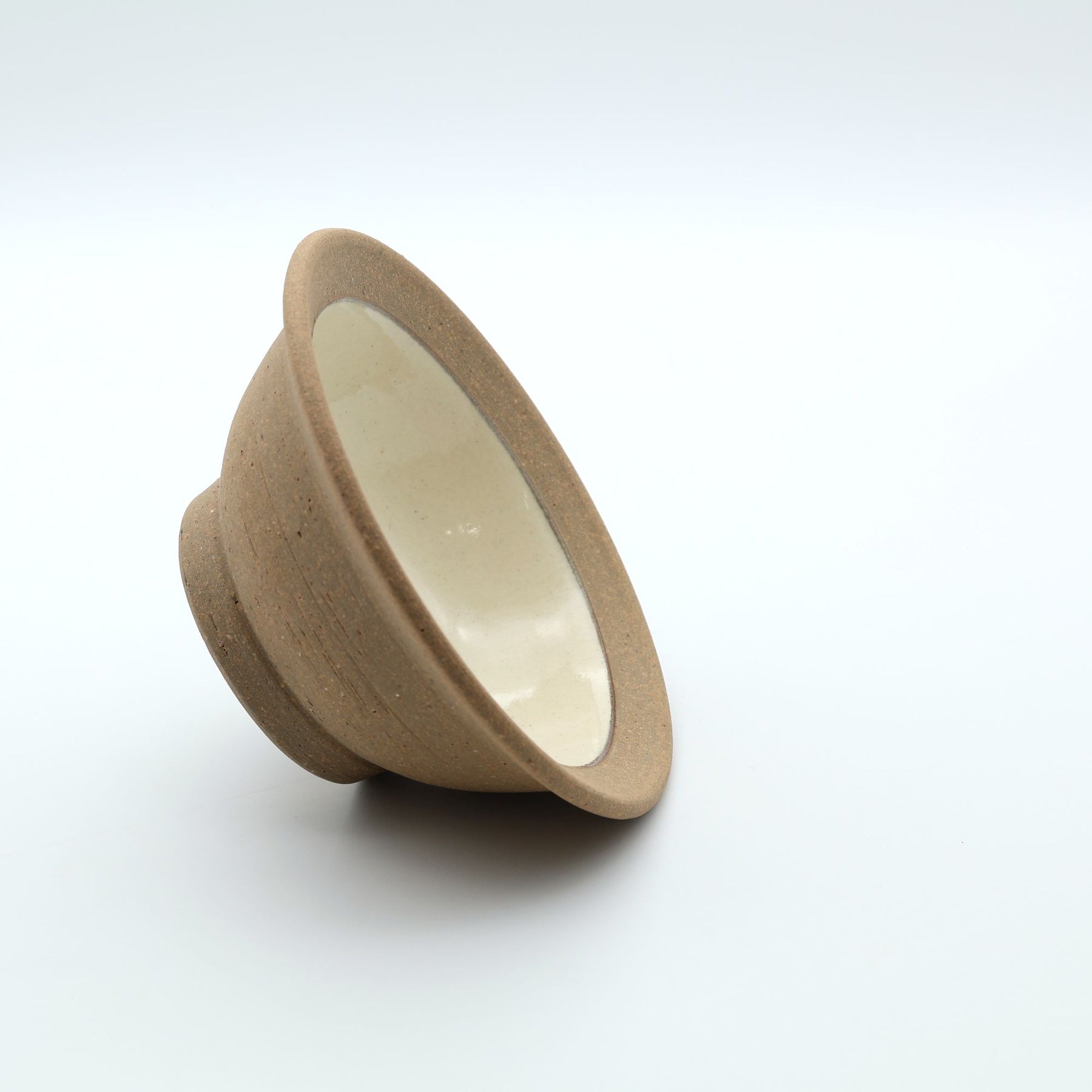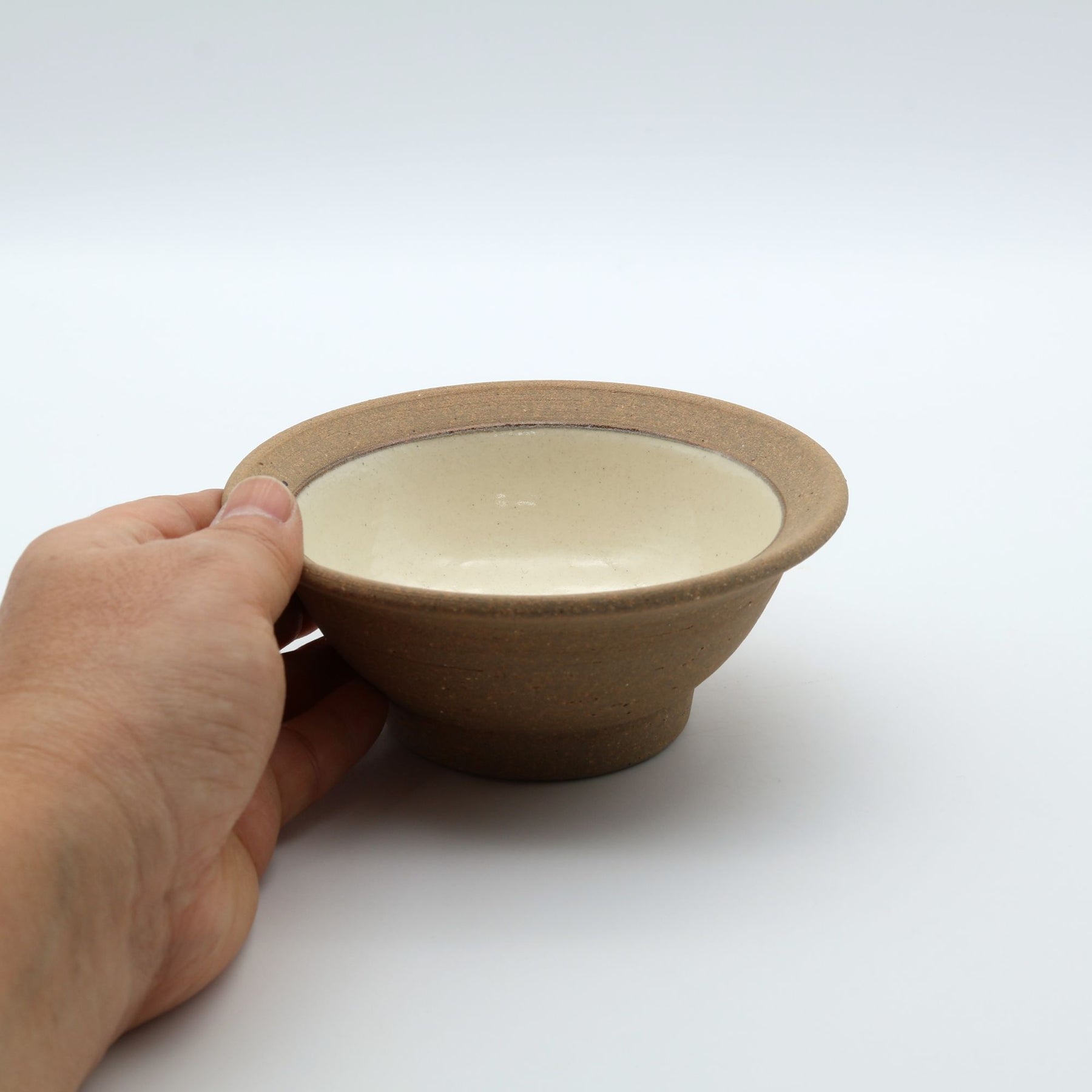 外側の焼締めた土本来のざらりとした質感と、艶のある内側のコントラストが美しく、質感の対比が楽しめる一品。日々の食卓で活躍してくれる小鉢です。
