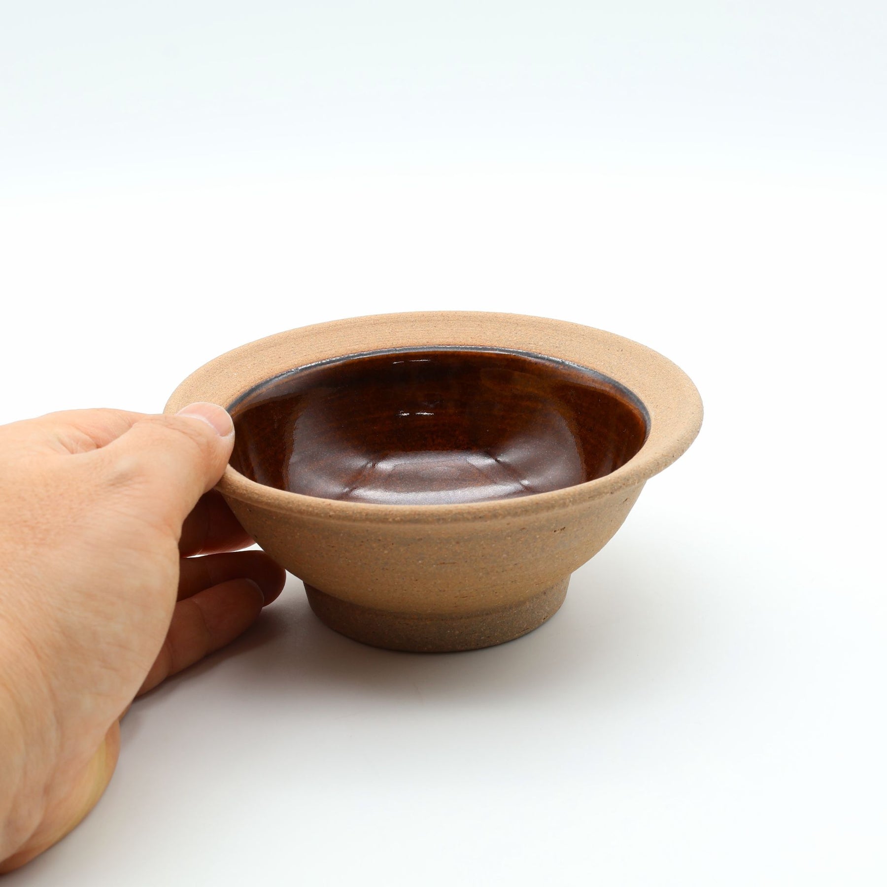 外側の焼締めた土本来のざらりとした質感と、艶のある内側のコントラストが美しく、質感の対比が楽しめる一品。日々の食卓で活躍してくれる小鉢です。