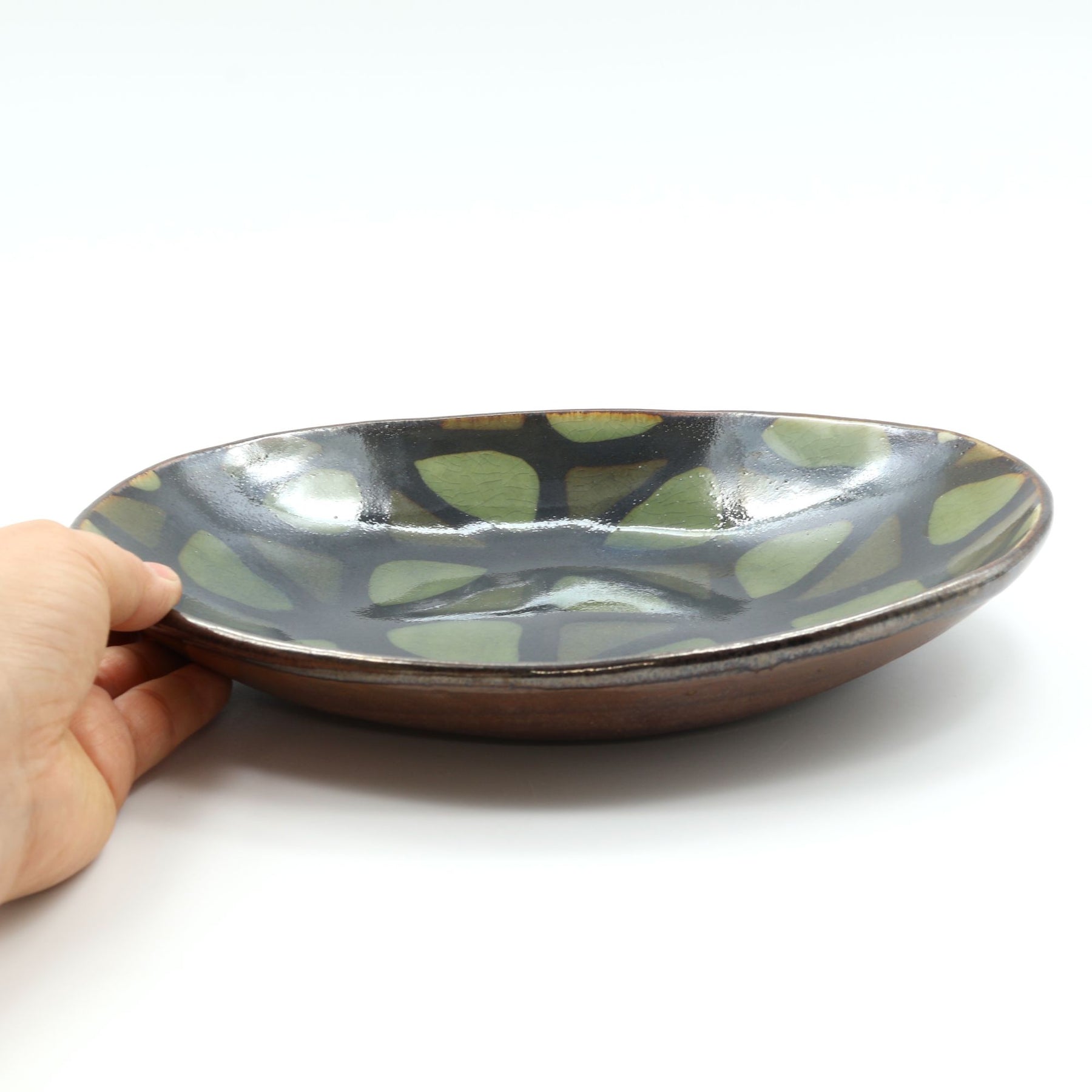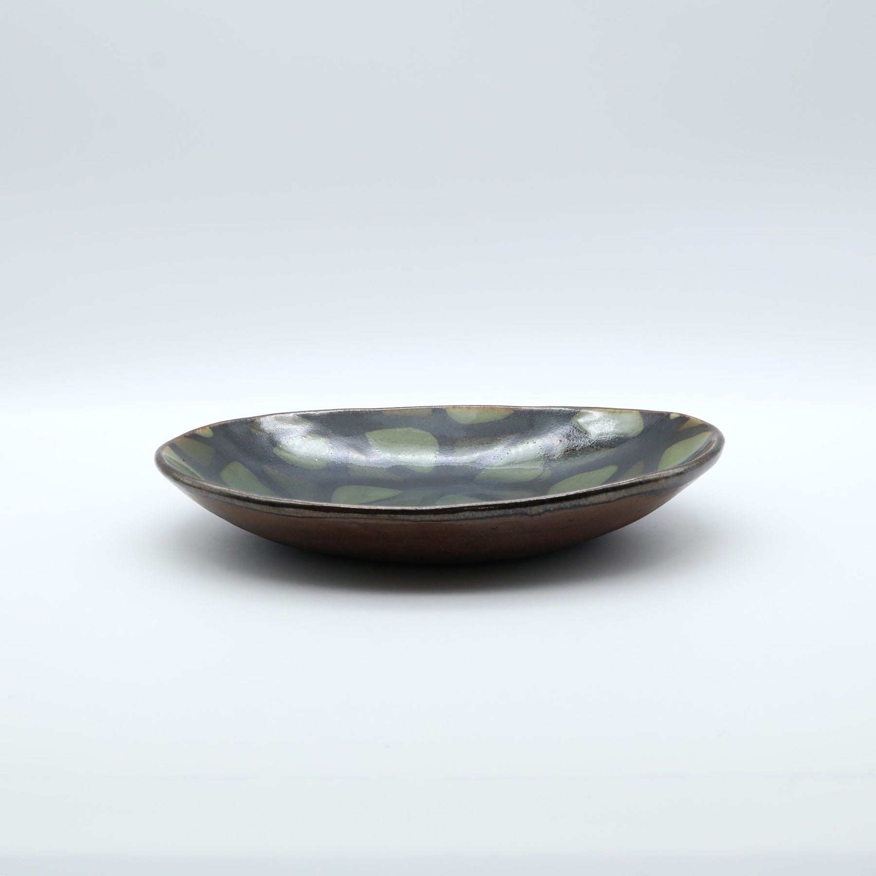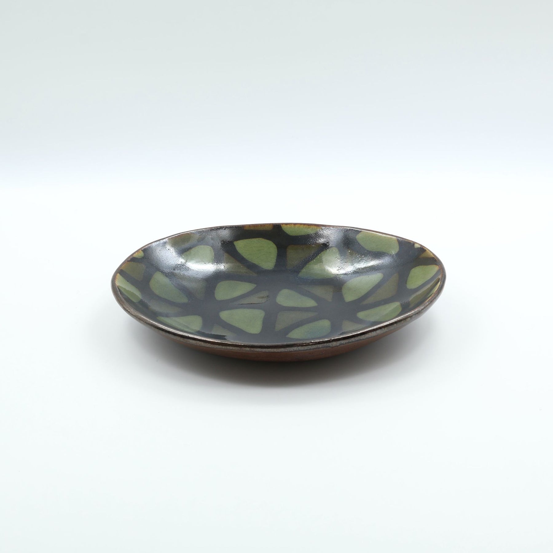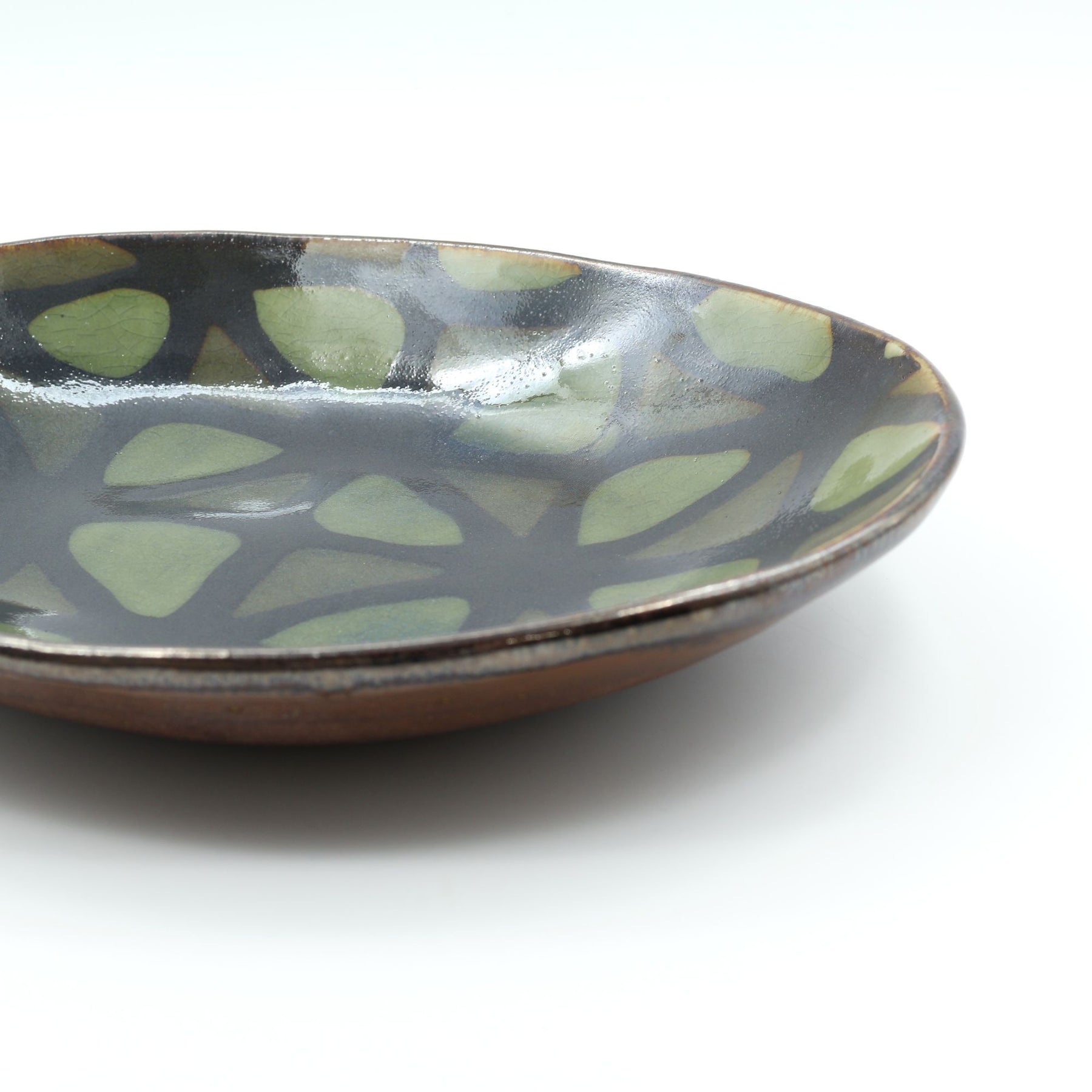 生楽陶苑のスリップウェア カレー皿 緑モザイク柄