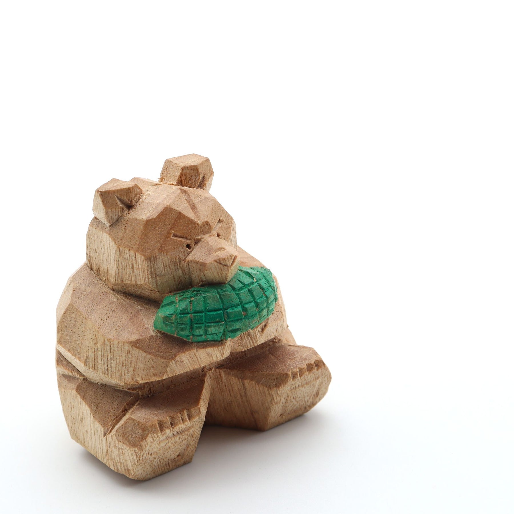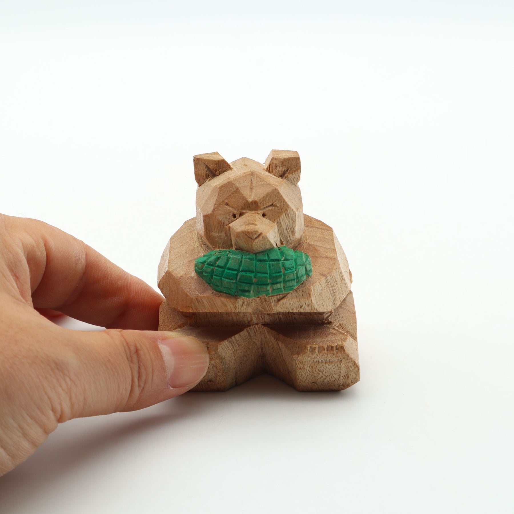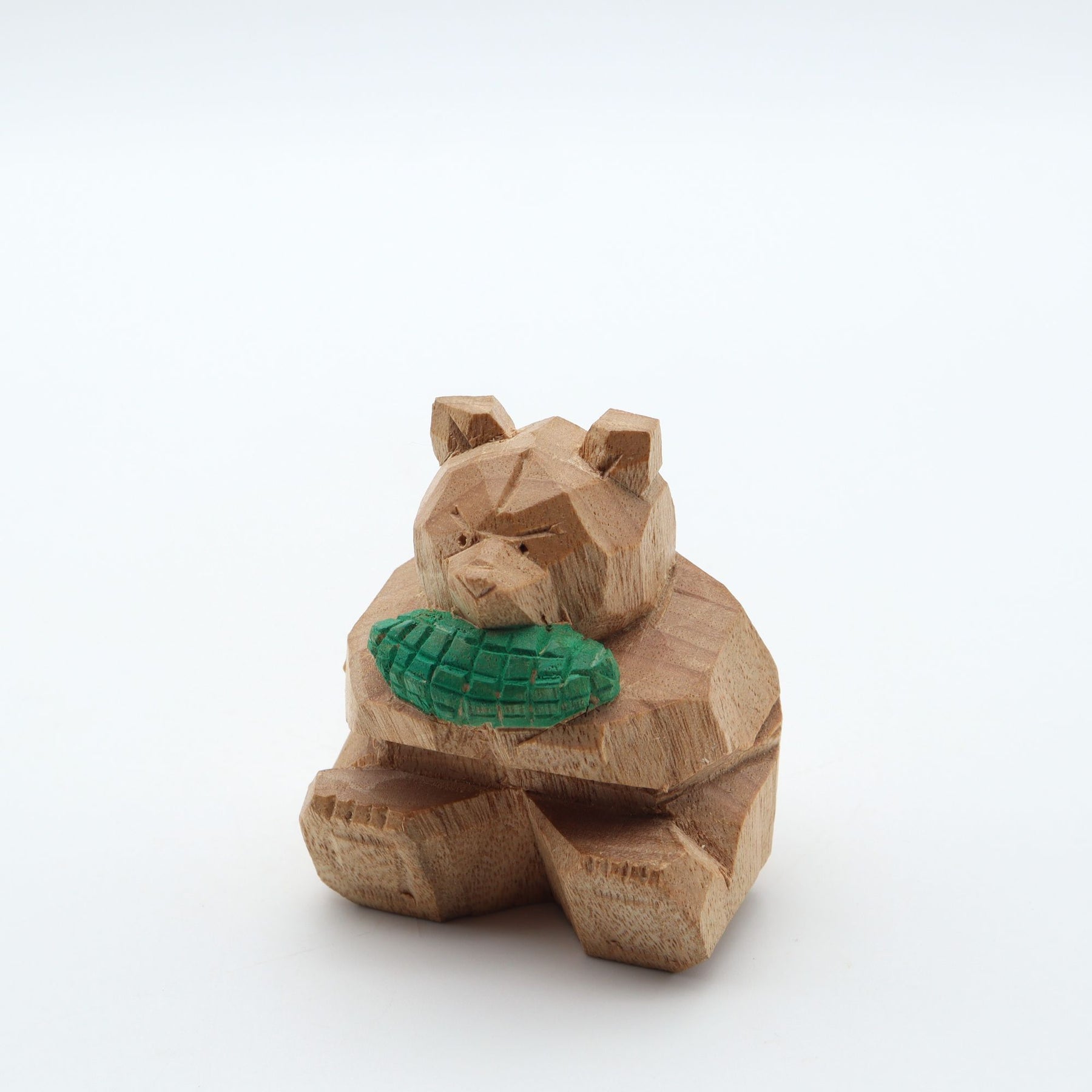 岐阜県で木彫りのくまを制作している作家さんによる沖縄をイメージしたオリジナルのくまです。こちらはゴーヤーを両手に持つくま。足を投げ出して目の前のゴーヤーに夢中の様子。甘いはちみつだけでなく、ビターな味わいも好むタイプのくまです。サイズ:約W5 x D4 x H6cm重さ:約30g※作品はすべて1点ものです。この作家の他の作品はこちら → ギザグマ北海道八雲町の木彫り熊に関しての記事はこちら → canosa-story-vol-26