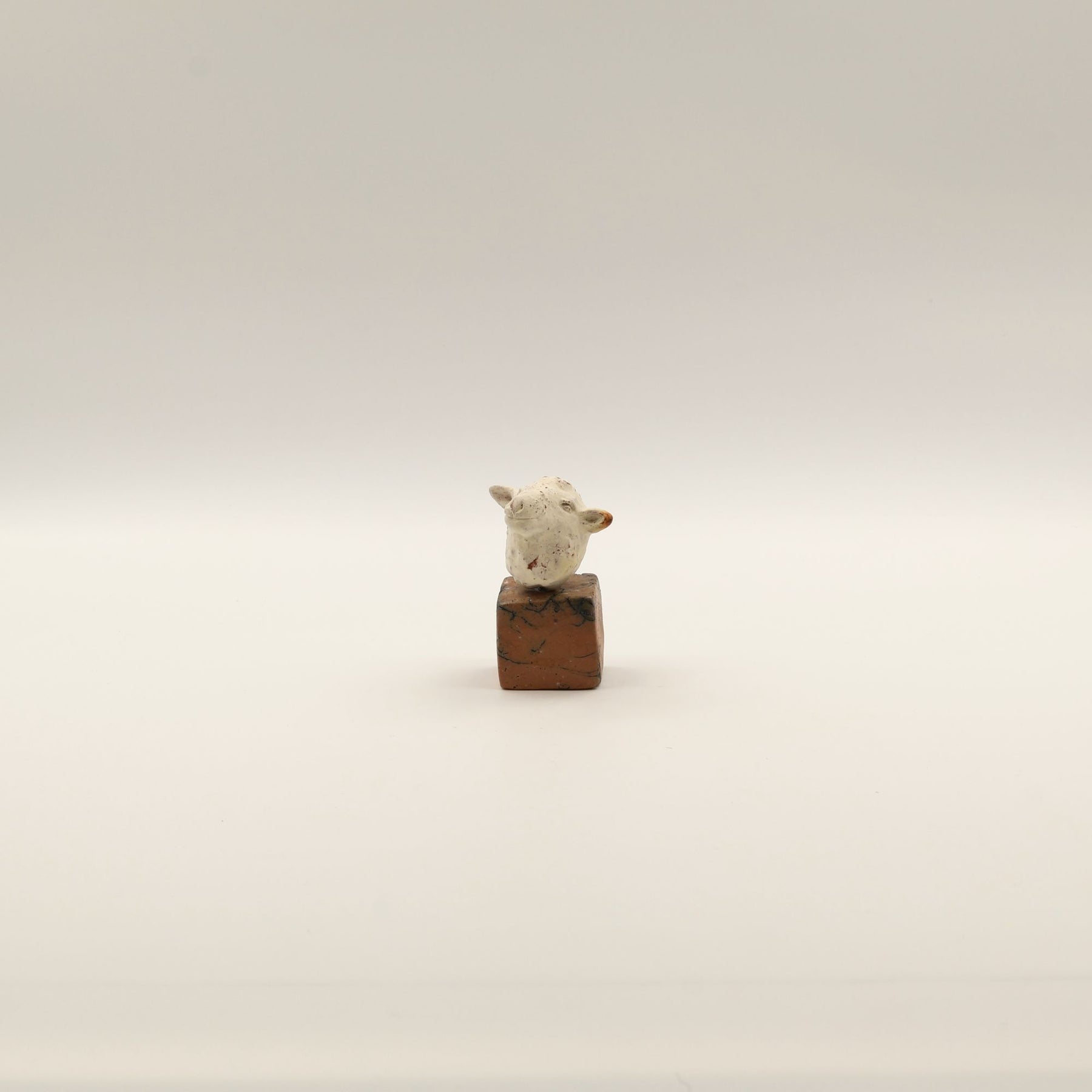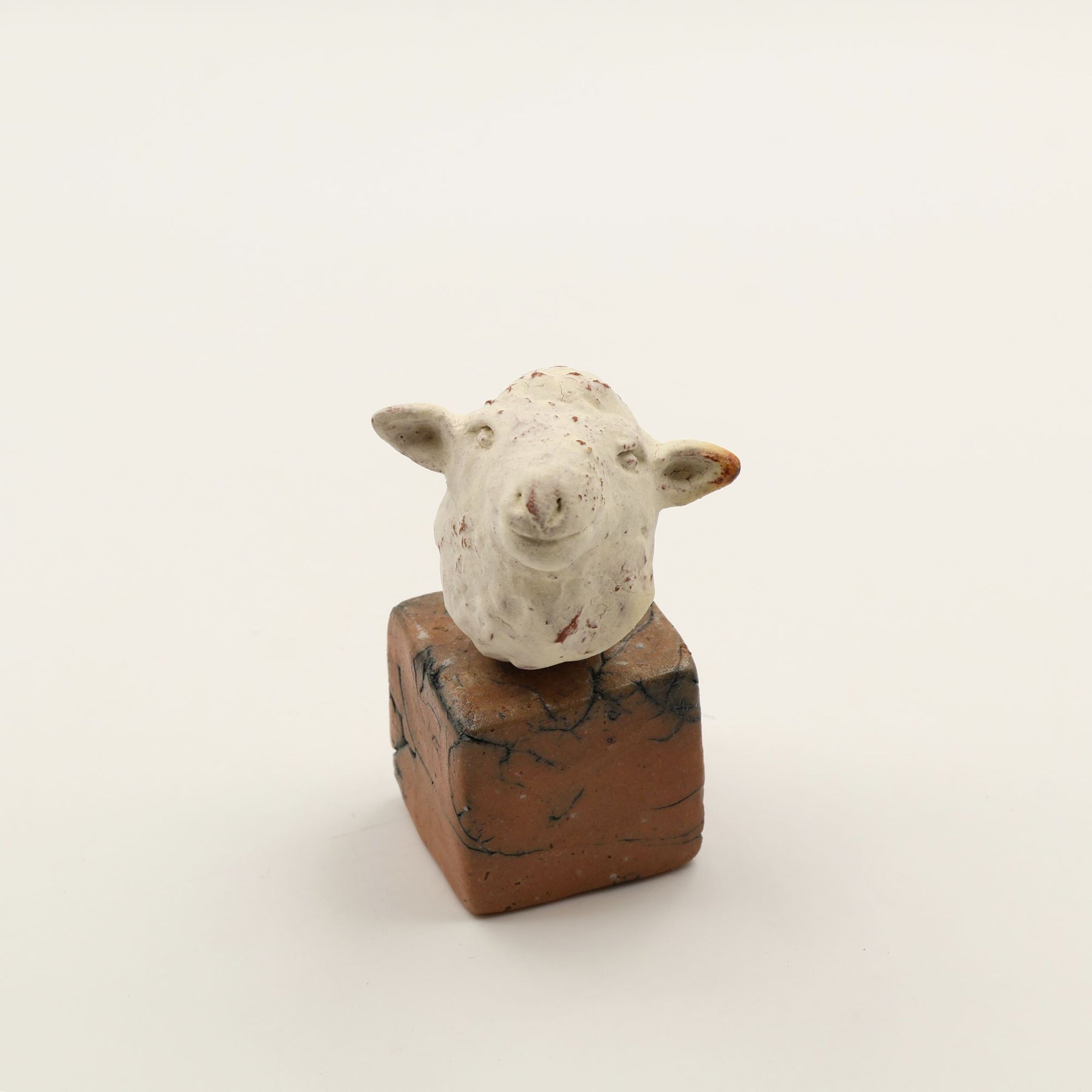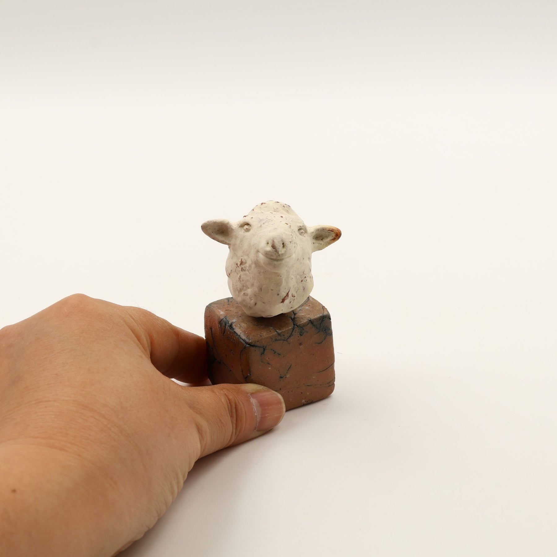 こちらは作家さんの工房名にも冠されている羊の置物。角度によって笑みをたたえ、こちらに向かって何かおしゃべりをしているようにも見えます。インパクトがありながら、奇抜になりすぎず、上品な印象の置物です。