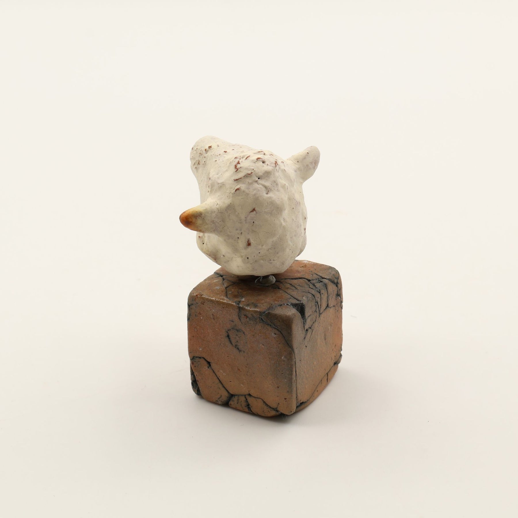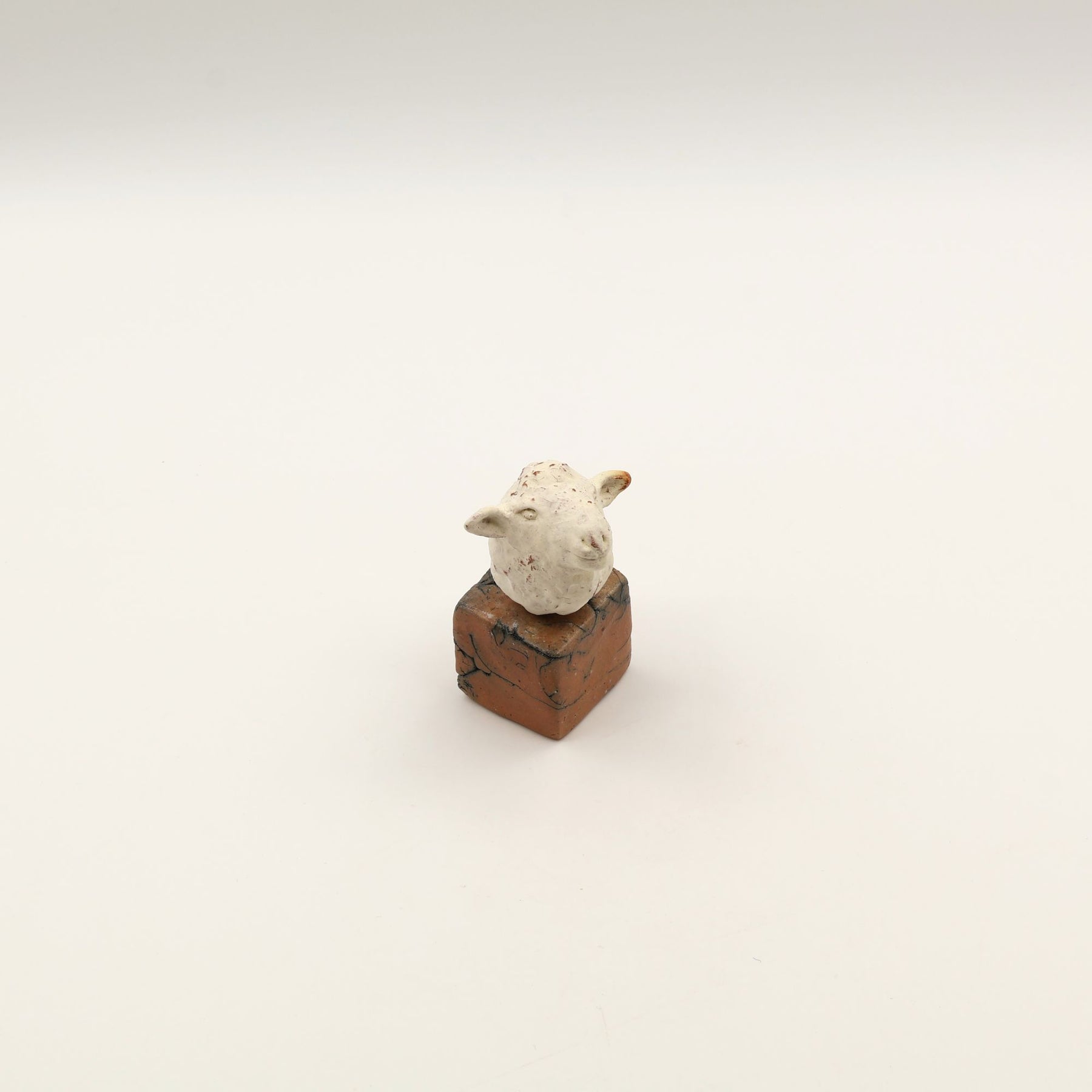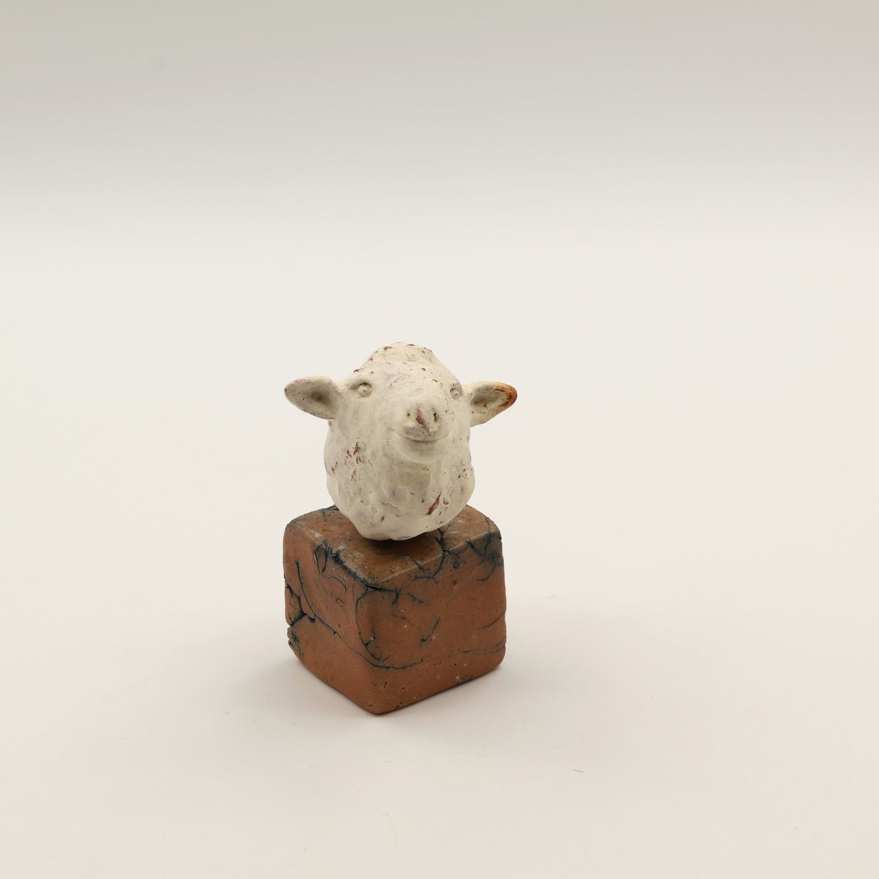 こちらは作家さんの工房名にも冠されている羊の置物。角度によって笑みをたたえ、こちらに向かって何かおしゃべりをしているようにも見えます。インパクトがありながら、奇抜になりすぎず、上品な印象の置物です。