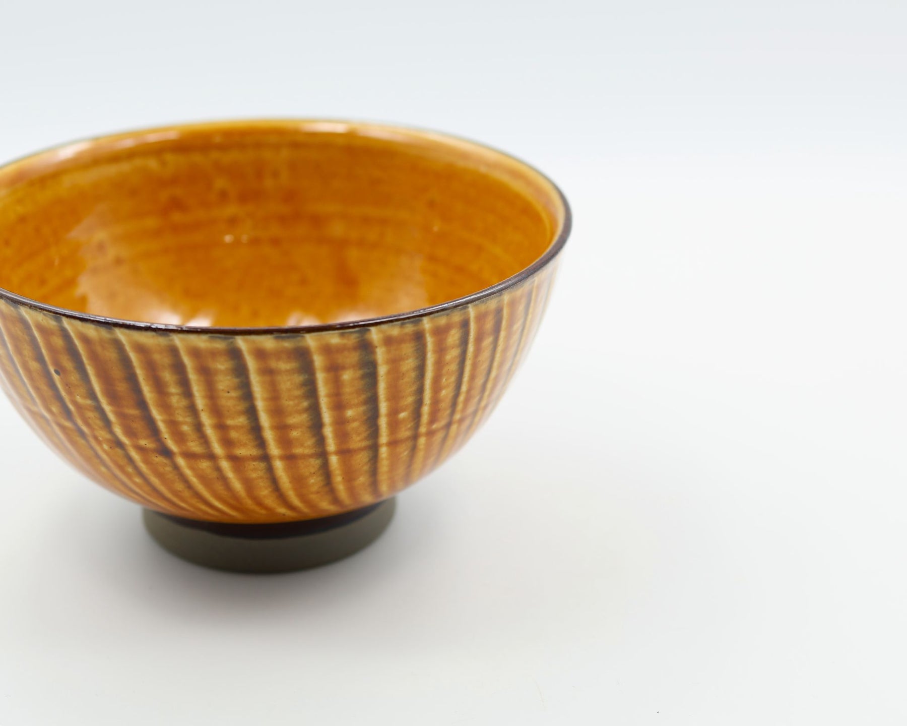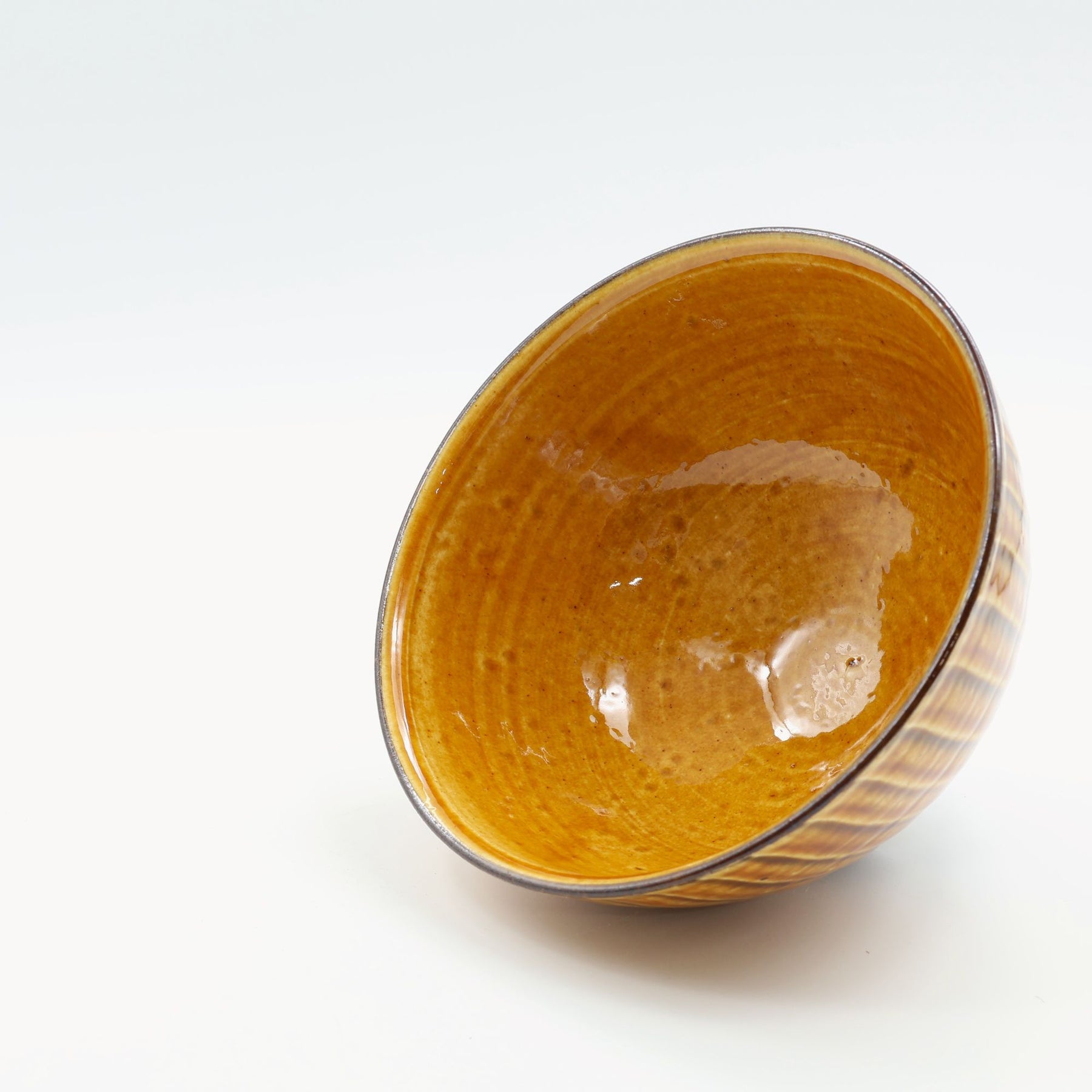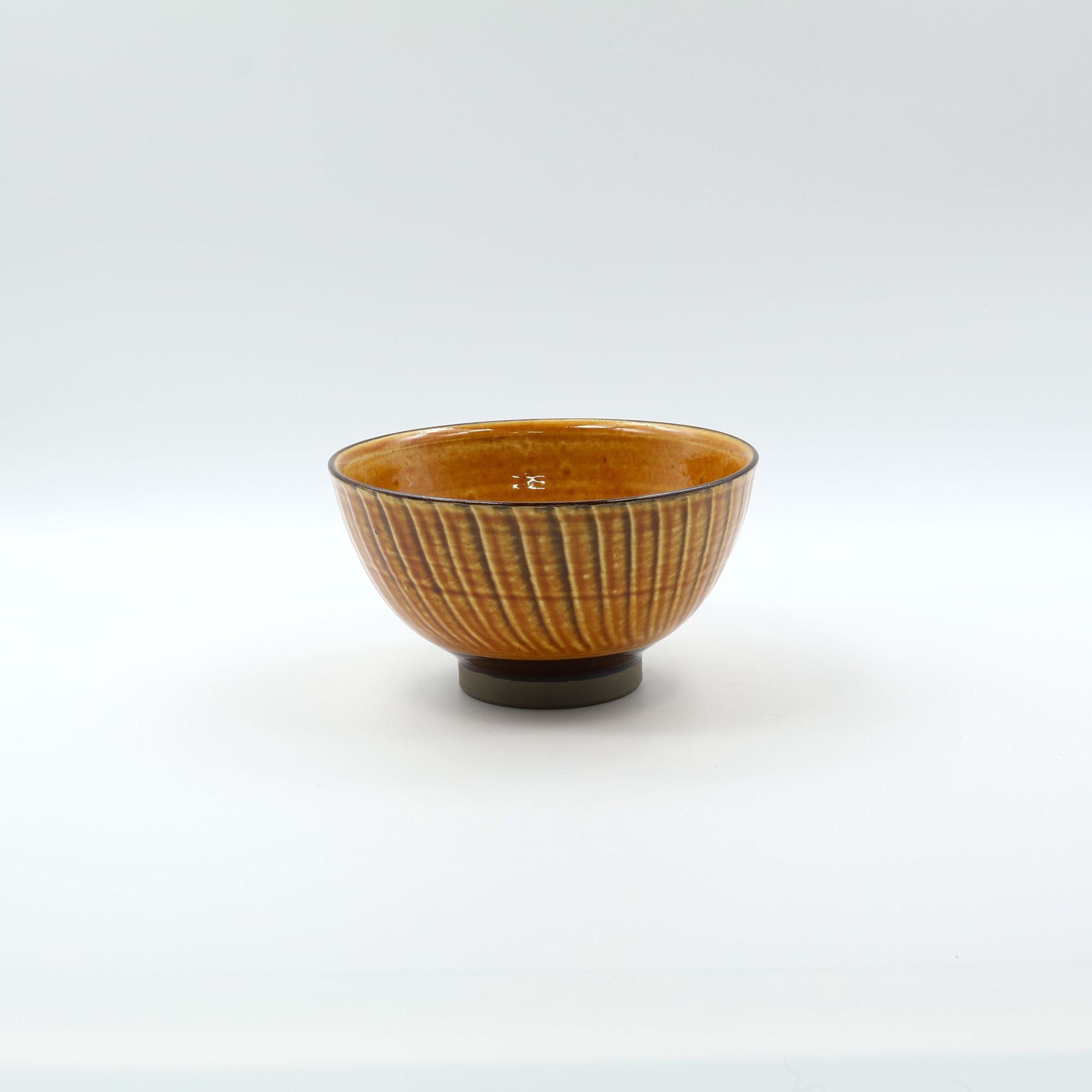 こちらは4.5寸の汁碗。一般的なお碗より少し大きめなので、豚汁やけんちん汁など具だくさんの汁物のほか、小ぶりの麺鉢やミニ丼としても使いやすいサイズです。リズミカルに施された外側の刷毛目模様は手仕事の温かみを感じさせてくれると同時にモダンな印象もあり、日々の食卓のアクセントになりそうです。色は白と飴をご用意しました。