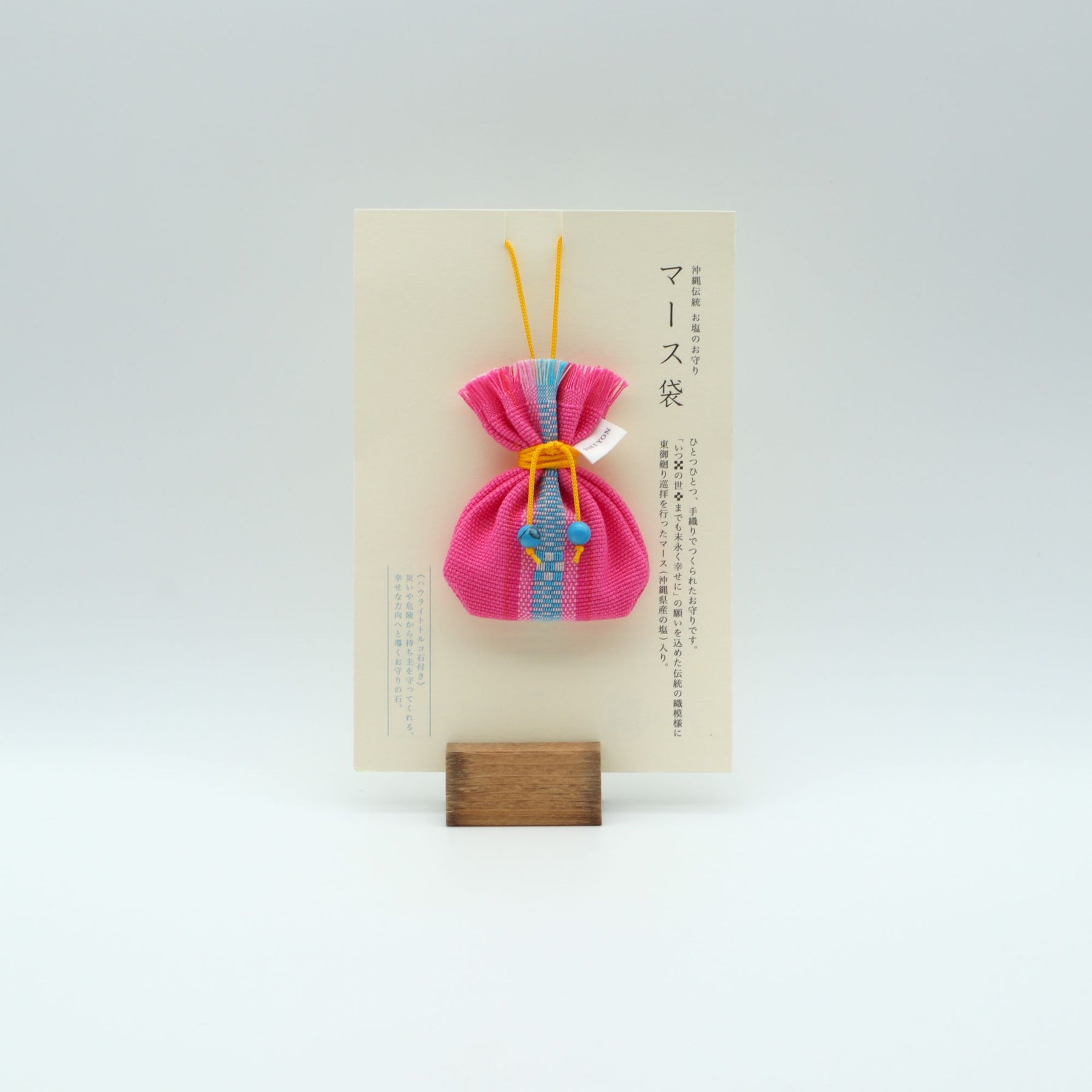 沖縄のお塩(マース)が入った、ひとつひとつ手織りでつくられたお守りです。沖縄では古くから厄除けとしてお塩を持ち歩く習慣があり、災いから身を守ってくれると信じられています。安全運転のお守りとして車に、お子さまの安全を願ってカバや・ランドセルなどに付けます。