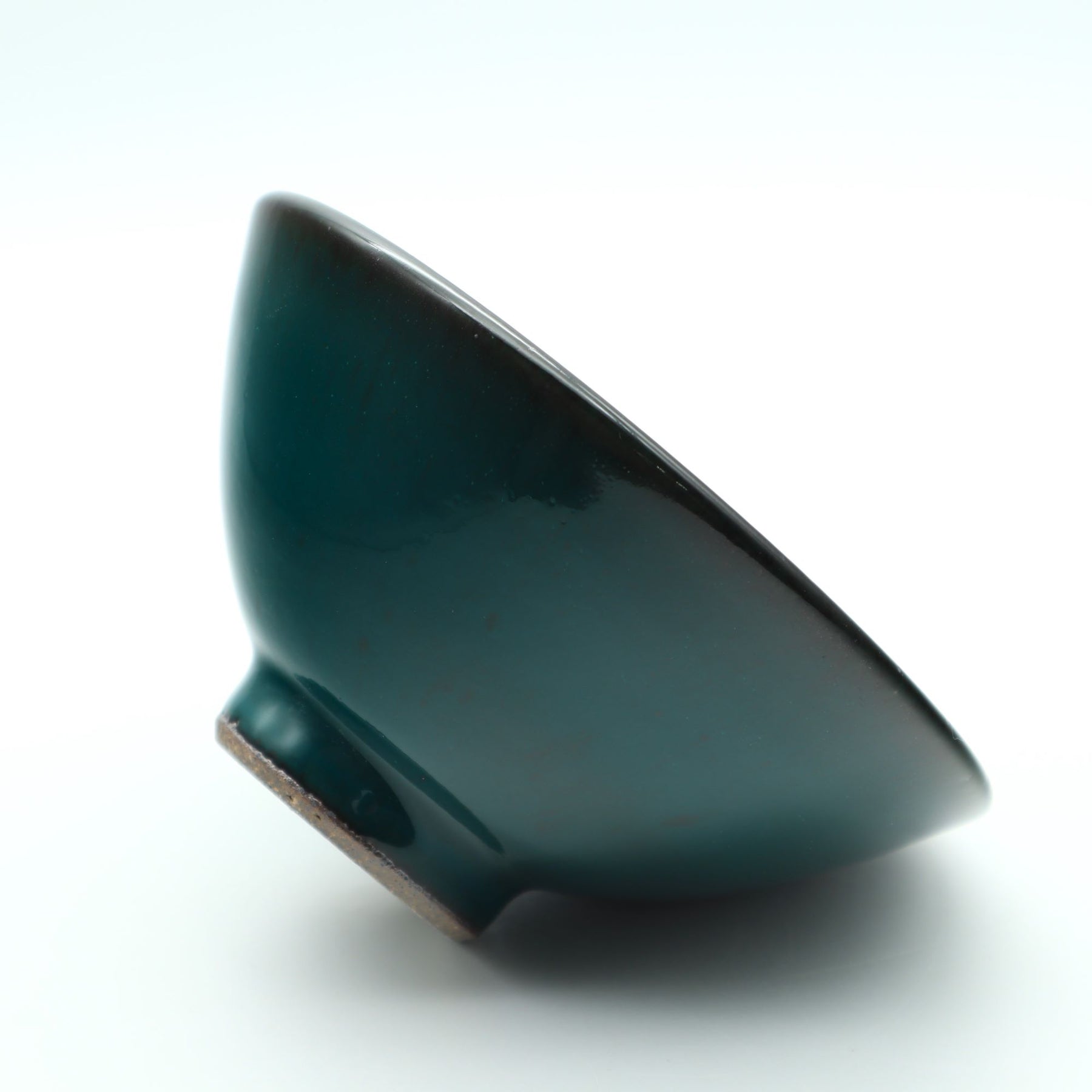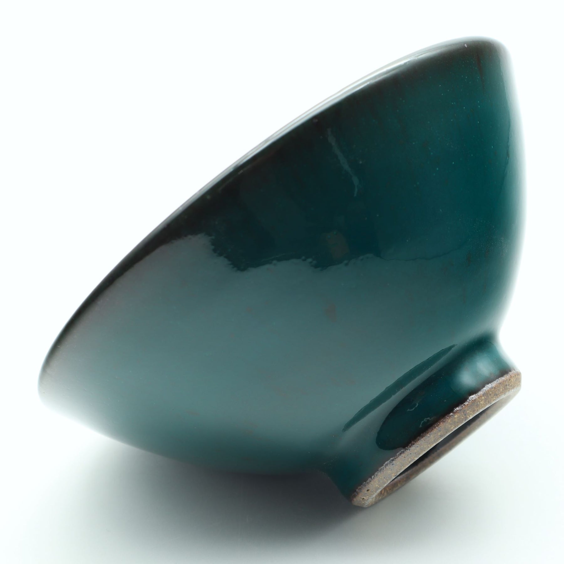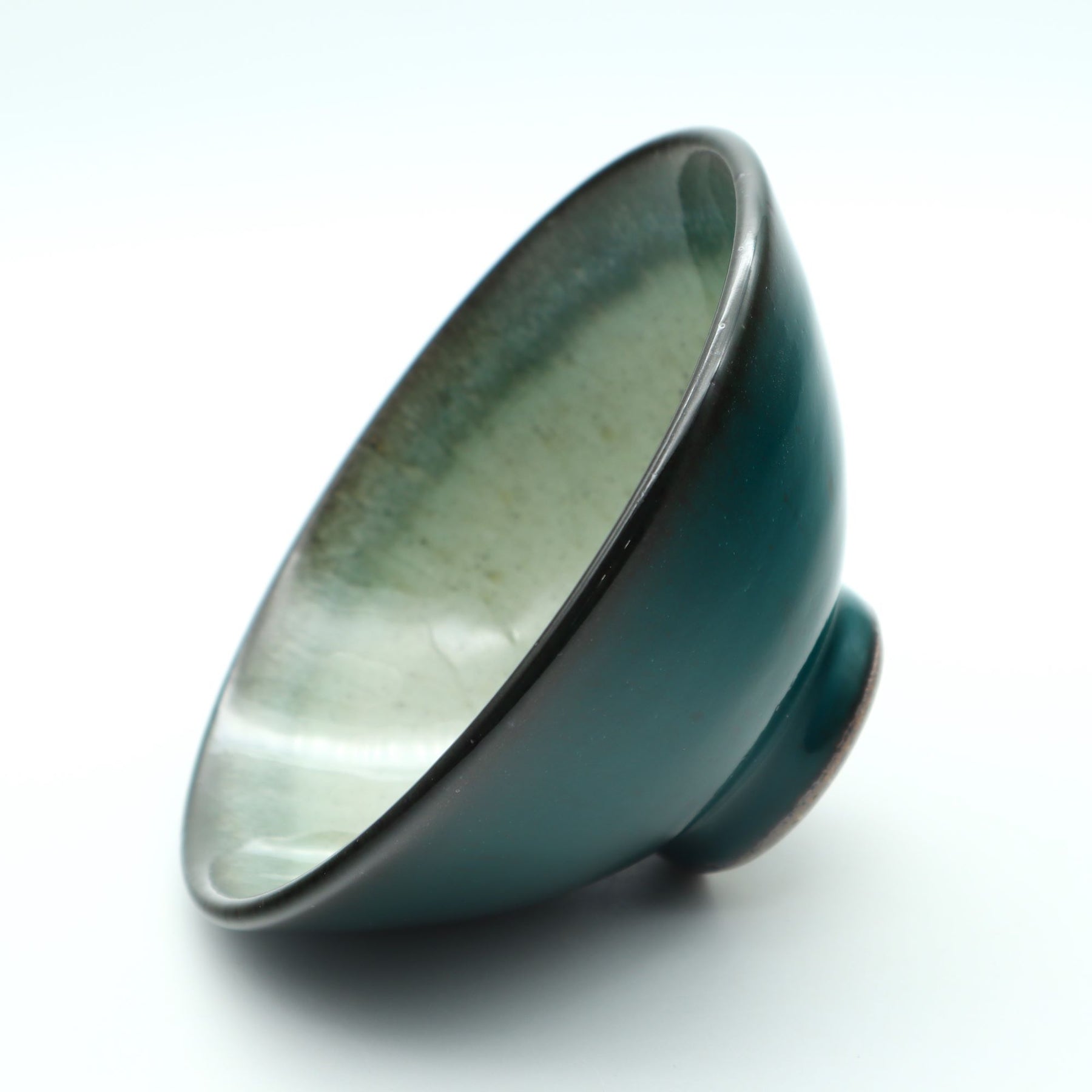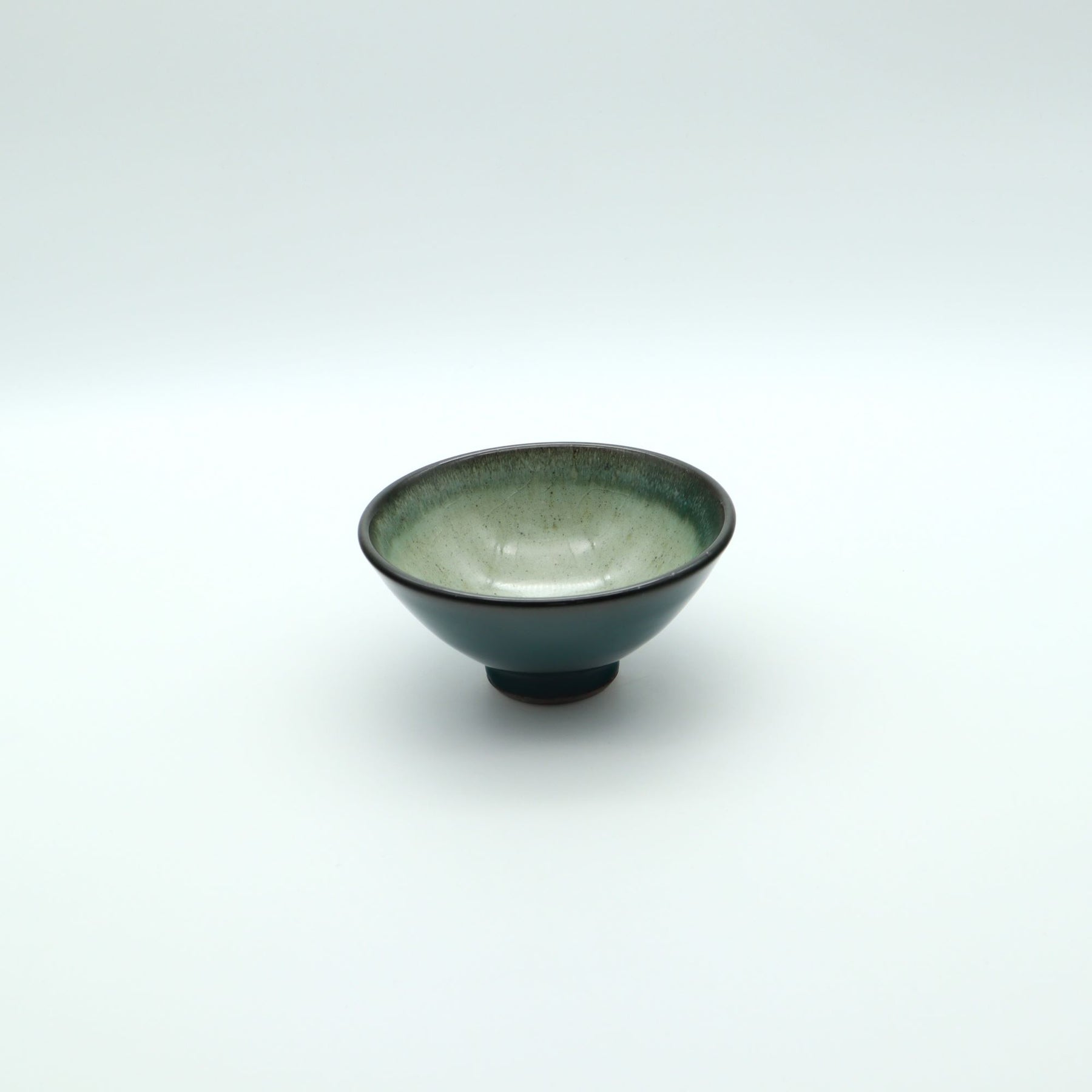 こちらは緑の色が美しいお茶碗。七右エ門窯らしい風合いと艶やかでしっとりとした質感が手に馴染みます。丈夫で長くご愛用いただける商品です。