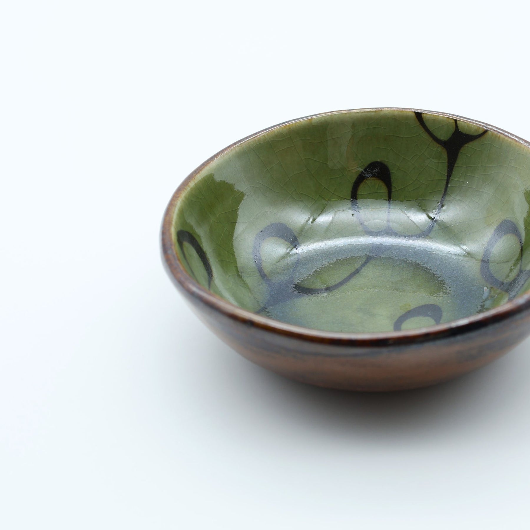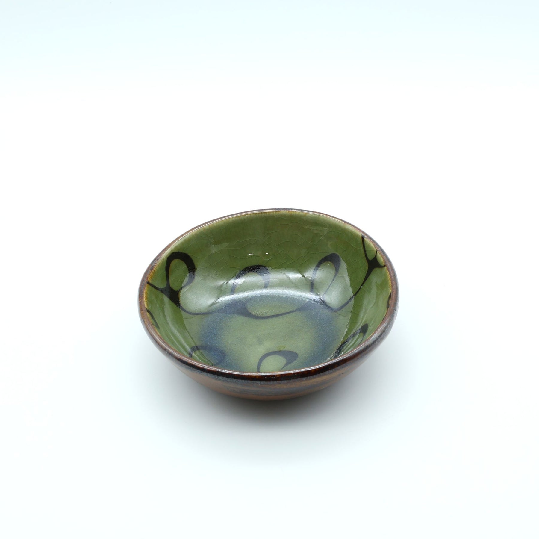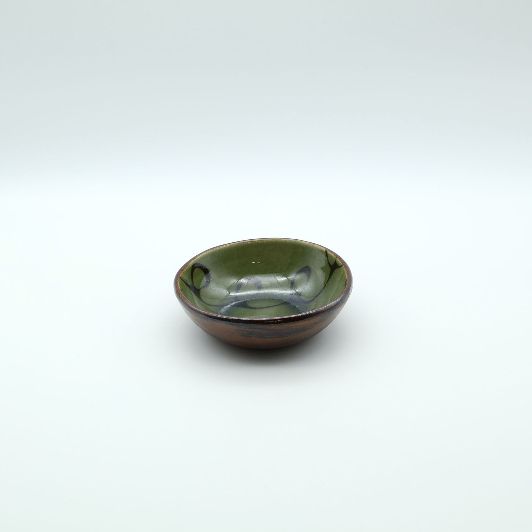 こちらは一人分の煮物、和え物、酢の物など副菜を盛り付けるのに便利な小鉢。スリップウェアと呼ばれる技法でオリジナルの紋様が描かれており、ヨーロッパ的な風情をもちながら、どこか素朴で懐かしさも感じさせてくれます。ひとつひとつ紋様を描いていくので、同じ紋様でもそれぞれ異なる表情になるのが特長。まるでラテアートのようなスリップウェアにしか出せない紋様、料理を盛り付けたときに見える柄、器の重厚感など、お料理を一層引き立ててくれるスリップウェアの魅力が詰まったうつわです。